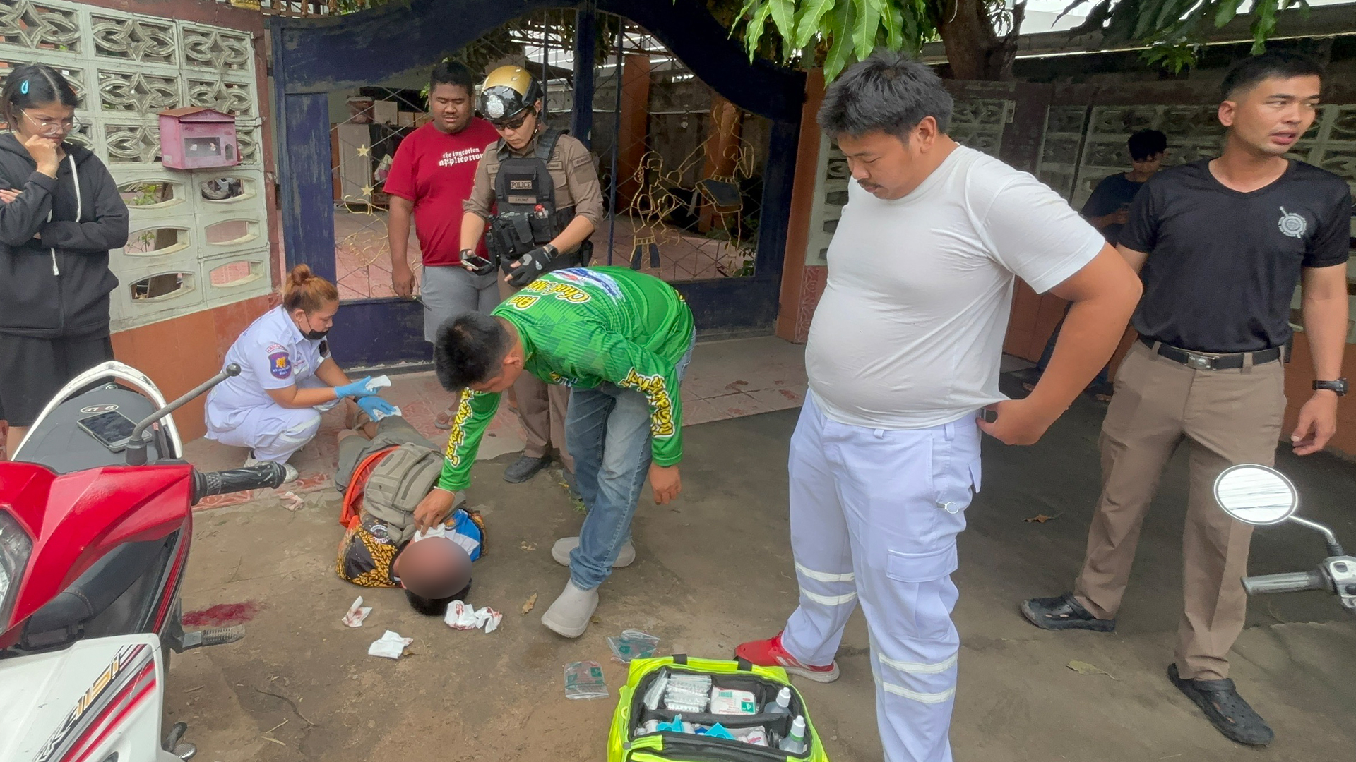ทั้งนี้ ในระหว่างที่เจ้าหน้าที่ตำรวจและกู้ภัยพยายามปฐมพยาบาล ชายคลั่ง ยังคงไม่ยอมสงบ พูดจาเสียงดัง โวยวาย และมีพฤติกรรมคล้ายคนมึนเมา จึงถูกนำตัวส่ง สภ.หนองปรือ เพื่อสงบสติอารมณ์และดำเนินการตามขั้นตอนของกฎหมาย โดยเบื้องต้นมีภาพจากกล้องวงจรปิดบันทึกเหตุการณ์ไว้ได้อย่างชัดเจน