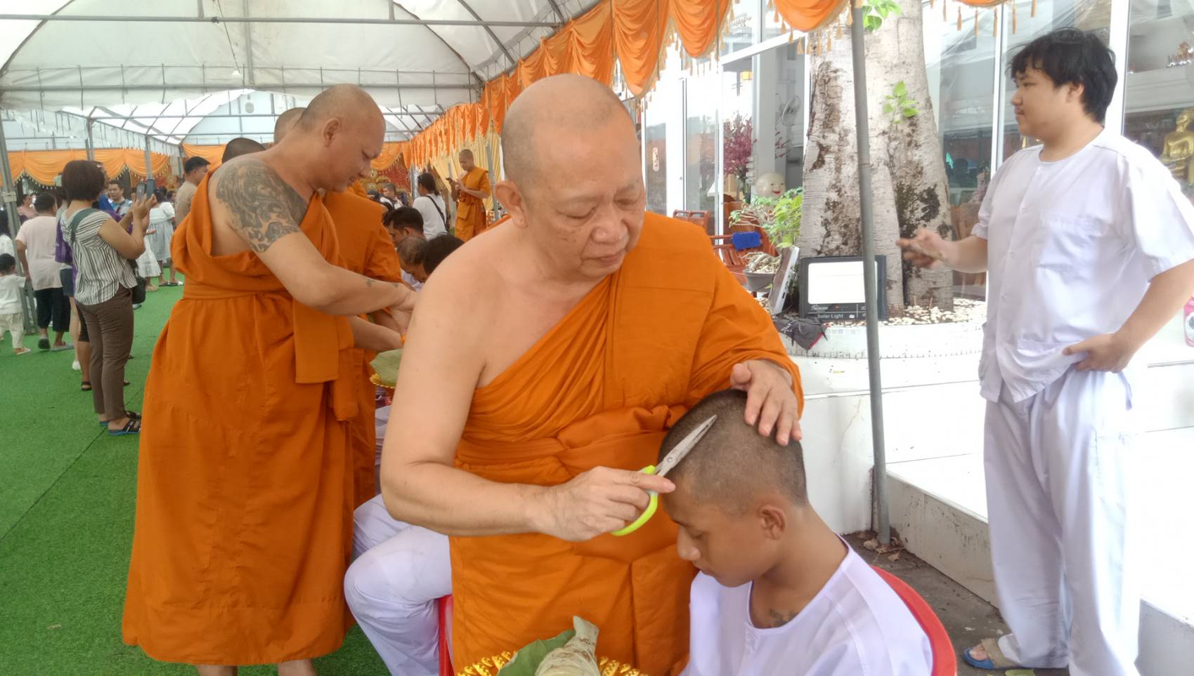 โดยมี พระครูมธุรสธรรมภาณ เจ้าอาวาสวัดรังษีสุทธาวาส และรองเจ้าคณะอำเภอศรีราชา ประธานฝ่ายสงฆ์ และนายเอกสิทธิ์ อ่ำฉอ้อน สมาชิกสภาองค์การบริหารส่วนจังหวัดชลบุรี เขตอำเภอศรีราชา เป็นประธานฝ่ายฆราวาส นายนิธิกร วัฒนา ผู้ใหญ่บ้านหมู่ 3 นายทิวากร พัฒนกูล สมาชิกสภาเทศบาลนครเจ้าพระยาสุรศักดิ์ เขต 2 และผู้นำชุมชนประชาชนผู้มีจิตศัรทธา และผู้ปกครองเข้าร่วมพิธีปลงผมนาคและทำขวัญนาค