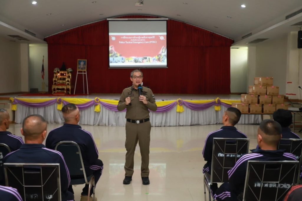 ตามนโยบายของสำนักงานตำรวจแห่งชาติ เมื่อวันอังคารที่ 10 มิถุนายน 2568 ณ กองกำกับการตำรวจตระเวนชายแดนที่ 22 จังหวัดอุบลราชธานีพล.ต.ท.ทวีศิลป์ เวชวิทารณ์ นายแพทย์ใหญ่ (สบ. โรงพยาบาลตำรวจ มอบหมายให้ พล.ต.ต.เอกลักษณ์ ดีรุ่งโรจน์ นายแพทย์ (สบ 6) ปฏิบัติหน้าที่หัวหน้ากลุ่มงานศูนย์ส่งกลับฯ โรงพยาบาลตำรวจร่วมกับ กองบังคับการตำรวจตระเวนชายแดนภาค 2 โดย พล.ต.ต.กิตติศักดิ์ ปลาทอง ผู้บังคับการ ตชด.ภาค 2 จัดโครงการฝึกอบรมการปฐมพยาบาลทางยุทธวิธี (PTEC) ให้แก่ข้าราชการตำรวจในสังกัด ตชด.ภาค 2