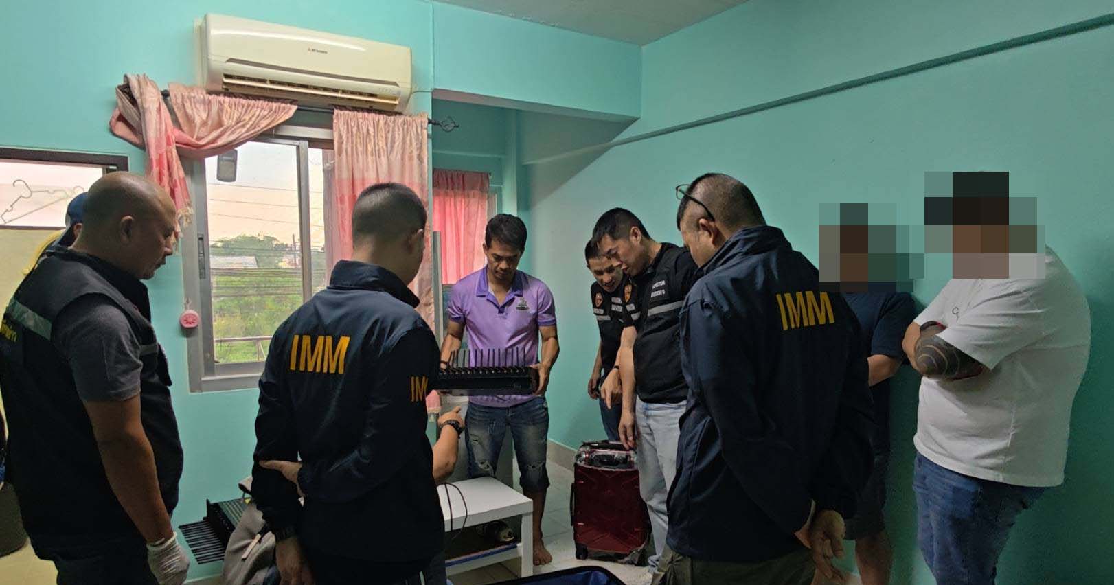 สืบเนื่องจากนโยบายของ พล.ต.อ.กิตติรัฐ พันธุ์เพ็ชร์ ผู้บัญชาการตำรวจแห่งชาติ ที่สั่งการให้ทุกหน่วยเร่งปราบปรามอาชญากรรมข้ามชาติ และควบคุมความมั่นคงบริเวณชายแดนอย่างเข้มงวด ภายใต้การอำนวยการของ พล.ต.อ.ธัชชัย ปิตะนีละบุตร จตช./ผอ.ศปอส.ตร., พล.ต.อ.ธนา ชูวงศ์ รอง ผบ.ตร./ผอ.ศปชก.ตร. และ พล.ต.อ.อัคราเดช พิมลศรี ที่ปรึกษาพิเศษ ตร./ผอ.ศนรด.ตร. เมื่อวันที่ 15 มิ.ย. 2568 พล.ต.ต.ทรงโปรด สิริสุขะ ผู้บังคับการตรวจคนเข้าเมือง 6 (ผบก.ตม.6) สั่งการให้ พ.ต.อ.ภาณุภาคยณ์ จิตประยูรตี รอง ผบก.ตม.6 และ พ.ต.อ.ชินวุฒิ ตั้งวงษ์เลิศ ผกก.ตม.จว.สงขลา นำกำลังฝ่ายสืบสวนร่วมกับ กก.สส.บก.ตม.6, บก.ตชด.437 และ สภ.สะเดา จับกุมชาวต่างชาติ 2 ราย คือ นายยูจีน นามสมมุติอายุ 37 ปี สัญชาติมาเลเซีย และนายตัน นามสมมุติ อายุ 25 ปี สัญชาติมาเลเซีย โดยทั้งสองเดินทางเข้าประเทศผ่านด่าน ตม.สะเดา เมื่อวันที่ 12 มิถุนายน 2568 ต่อมาถูกจับกุมบริเวณหน้าร้านสะดวกซื้อ 7-11 สาขาบ้านด่านนอก และคอนโดมิเนียมแห่งหนึ่งในพื้นที่ ต.สำนักขาม อ.สะเดา จ.สงขลา พร้อมของกลาง ประกอบด้วย เครื่องกระจายสัญญาณซิมบ็อกซ์ จำนวน 8 เครื่อง, เครื่องเราเตอร์อินเทอร์เน็ตพร้อมซิมการ์ดอีก 8 เครื่อง ซึ่งเข้าข่ายเป็นเครื่องวิทยุคมนาคมตามกฎหมาย โดยไม่มีใบอนุญาต