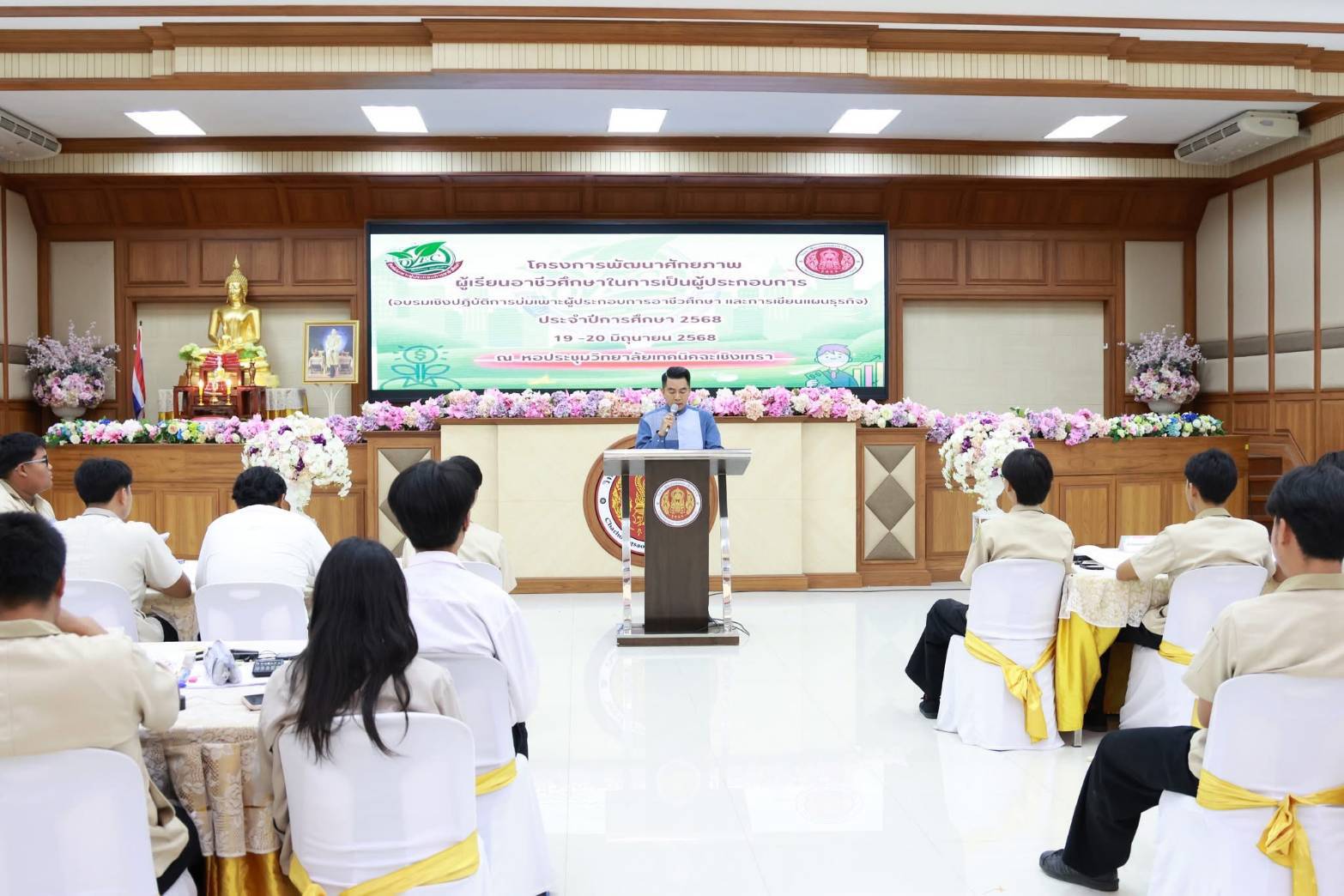 วันศุกร์ที่ ๒๐ มิถุนายน ๒๕๖๘ เวลา ๑๔.๐๐ น. ว่าที่พันตรี ดร.วัชรพล ลักษณลม้าย ผู้อำนวยการ(วิทยฐานะเชี่ยวชาญ) วิทยาลัยเทคนิคฉะเชิงเทรา – ผู้อำนวยการสำนักงานอาชีวศึกษาจังหวัดฉะเชิงเทรา เป็นประธานมอบใบเกียติบัตร แก่คณะวิทยากร ครูที่ปรึกษาธุรกิจและ นักเรียน -นักศึกษา ที่เข้าร่วมโครงการ เขียนแผนธุรกิจ ภายใต้ศูนย์บ่มเพาะผู้ประกอบการอาชีวศึกษา วิทยาลัยเทคนิคฉะเชิงเทรา และกล่าวปิดโครงการอบรมพัฒนาศักยภาพการเป็นผู้ประกอบการและเขียนแผนธุรกิจ โดยมีนายสุมิตร คชวงษ์ (รองผู้อำนวยการฝ่ายแผนงานและความร่วมมือ) นางสาวสมจิตต์ อุระงาม (รองผู้อำนวยการฝ่ายวิชาการ) นายรุ่งเรือง สูยะนันทน์ (รองผู้อำนวยการฝ่ายพัฒนากิจการนักเรียน นักศึกษา นางสาวณัฐรินีย์ สุริวงษ์ (รองผู้อำนวยการฝ่ายบริหารทรัพยากร) นายนิวัตร ศรีคำสุข หัวหน้างานส่งเสริมผลผลิตการค้าและประกอบธุรกิจ และนางสาวจริยา ศรีสมบูรณ์ หัวหน้าศูนย์บ่มเพาะผู้ประกอบการอาชีวศึกษา วิทยาลัยเทคนิคฉะเชิงเทรา