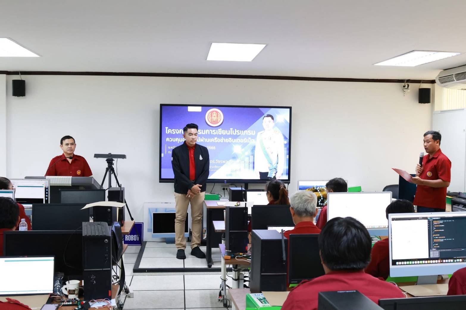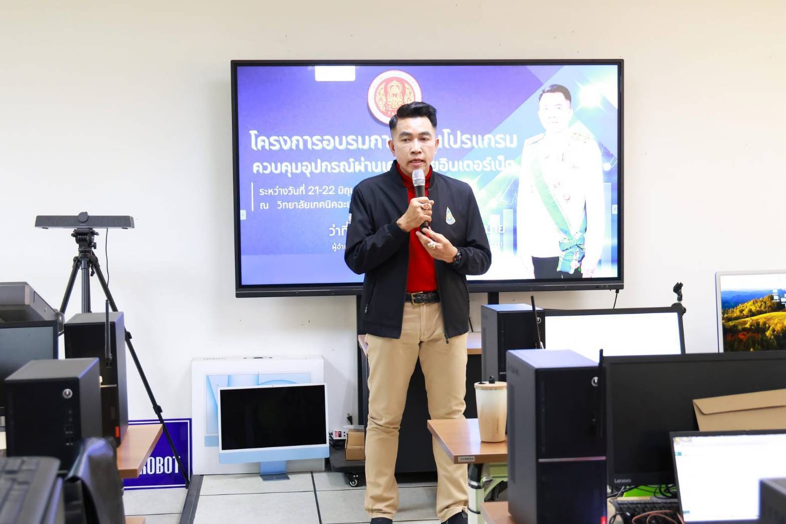 วันที่ 22 มิถุนายน 2568 ว่าที่พันตรี ดร.วัชรพล ลักษณลม้าย ผู้อำนวยการ(วิทยฐานะเชี่ยวชาญ) วิทยาลัยเทคนิคฉะเชิงเทรา – ผู้อำนวยการสำนักงานอาชีวศึกษาจังหวัดฉะเชิงเทรา เป็นประธานในพิธีเปิด โครงการ อบรมการเขียนโปรแกรมควบคุมอุปกรณ์ผ่านเครือขายอินเตอรเน็ต เพื่อใหครูผู้สอนไดรับ การสงเสริมและพัฒนาศักยภาพสู่ความเป็นเลิศ