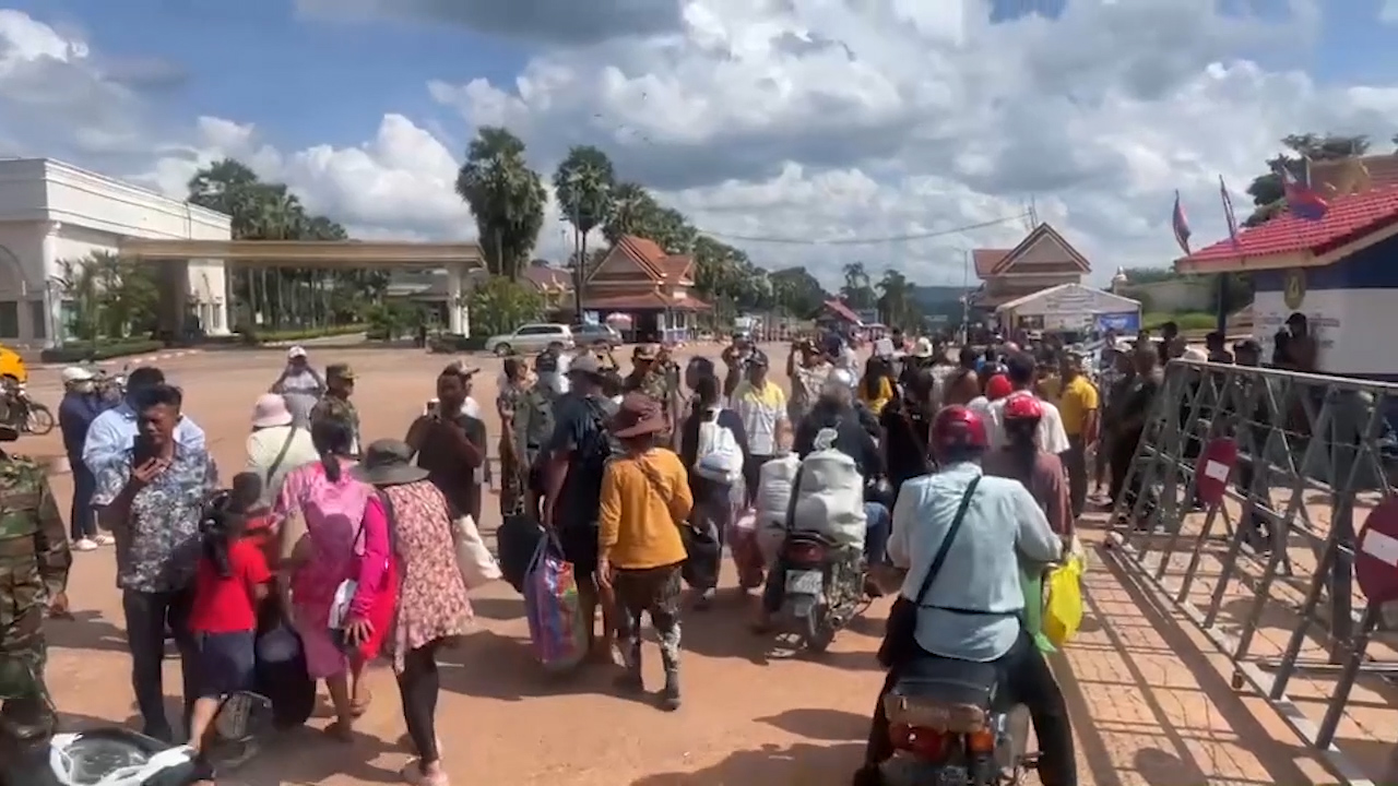 ขณะที่ชาวกัมพูชา ได้พากันมายืนรอสังเกตุการณ์ที่หน้าประตูด่านฝั่งกัมพูชา เนื่องจากบางคนไม่แน่ใจว่าจะข้ามแดนได้หรือไม่อย่างไรอีกด้วย