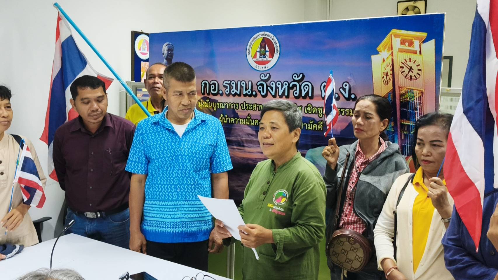 วันที่ 24 มิ.ย.68 ที่ศาลากลางจังหวัดตรัง กลุ่มประชาชนผู้รักชาติ นำโดยนายปรีดิ์ปราโมทย์ เลิศวรภัทร และสมาชิกยื่นหนังสือต่อศูนย์ดำรงธรรมจังหวัดตรังและ กอ.รมน.จังหวัดตรัง เรียกร้องให้ น.ส.แพรทองธาร ชินวัตร นายกรัฐมนตรี ลาออกจากตำแหน่ง จากกรณีคลิปเสียงสนทนากับสมเด็จฮุนเซนซึ่งเป็นที่วิพากษ์วิจารณ์อย่างกว้างขวาง โดยมีนายสมศักดิ์ ชูแสง ป้องกันจังหวัดตรัง และ พ.อ.ประพันธ์ สงประสพ หน.ฝ่ายการข่าว กอ.รมน. จ.ตรัง เป็นตัวแทนผู้รับมอบหนังสือ บรรยากาศเป็นไปด้วยความสงบ