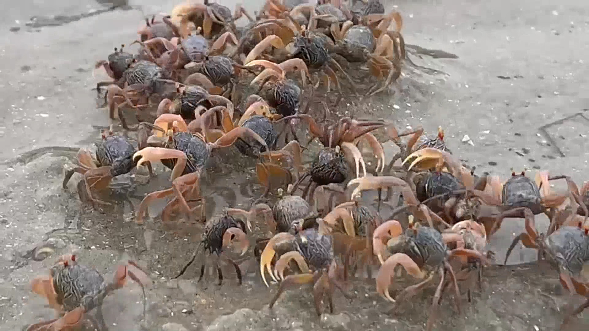 วันนี้ 25 มิ.ย. 2568 ผู้สื่อข่าวรายงานว่า ที่บริเวณเขาแบนะ ภายในเขตอุทยานแห่งชาติหาดเจ้าไหม จ.ตรัง มีนักท่องเที่ยวเดินชมกองทัพปูทหารนับล้านตัว ที่โผล่ขึ้นมาอวดโฉมหากินบนพื้นทรายหลังระดับน้ำทะเลลดลงต่ำสุด ซึ่งแสดงให้เห็นถึงความอุดมสมบูรณ์ทางทะเล และระบบนิเวศน์วิทยาที่ปราศจากโรงงานและสารเคมี อีกทั้งยังไม่มีศัตรู เช่น นกกระยาง เข้ามาจิกกิน จึงทำให้ฝูงปูทหารเพิ่มจำนวนมากขึ้นทุกปี จนกลายเป็นสีสันริมชายหาด โดยพบกระจายอยู่บริเวณฝั่งที่ไม่มีผู้คนพลุกพล่าน เพราะมีแหล่งอาหารจำพวกซากพืช ซากสัตว์ขนาดเล็กมากกว่าฝั่งที่มีคนเดินจำนวนมาก โดยพบหลากสีสัน ทั้งตัวเดียวมีสีเดียวและตัวเดียวมี 2-4 สี เช่น สีส้ม-เหลือง,สีส้ม,สีส้ม-ดำ,สีเหลืองอมเขียว,สีส้มปนแดงและอื่น ๆ ซึ่งสาเหตุที่ทำให้ปูทหารมีสีที่แตกต่างกัน เป็นเพราะเพศและอายุ ซึ่งเพศผู้จะมีสีที่เข้มกว่าและตัวใหญ่กว่า เพื่อใช้ดึงดูดความสนใจของเพศเมีย โดยหลังน้ำลดจะพบฝูงปูทหารเดินเรียงกันเป็นแถว บ้างก็เกาะกันเป็นกลุ่มใหญ่ ทำให้ผืนทรายกลายเป็นสีชมพู สวยงามแปลกตา