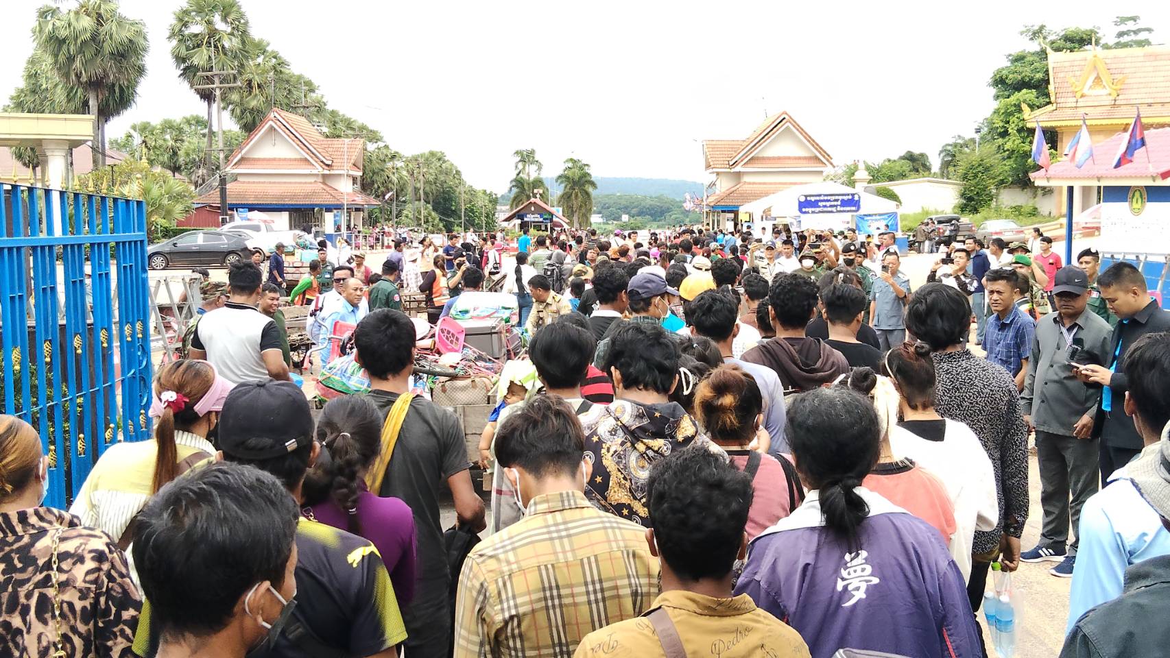 วันที่ 27 มิ.ย. 2568 ผู้สื่อข่าวรายงานถึงบรรยากาศที่ตลาดการค้าชายแดนช่องจอม ต.ด่าน อ.กาบเชิง จ.สุรินทร์ หลังจาก จนท.ทหารฝ่ายความมั่นคง ฝ่ายปกครอง อ.กาบเชิง ตม.สุรินทร์ ตำรวจ สภ.กาบเชิง และหน่วยงานที่เกี่ยวข้องได้ลงพื้นที่ตลาดการค้าชายแดนช่องจอม และตลาดโดยรอบ ต.ด่าน อ.กาบเชิง จ.สุรินทร์ เพื่อประชาสัมพันธ์ทำความเข้าใจและขอความร่วมมือให้บรรดาแรงงานชาวกัมพูชา ทั้งที่มีบัตรแรงงานต่างด้าว พาสปอร์ต และบอเดอร์พาสต์ที่ถูกต้อง หรือใกล้หมดอายุหรือหมดอายุแล้วก็ตาม ได้ขอความร่วมมือเชิญให้เดินทางกลับประเทศกัมพูชาไปก่อน จนกว่าสถานการณ์จะปกติ