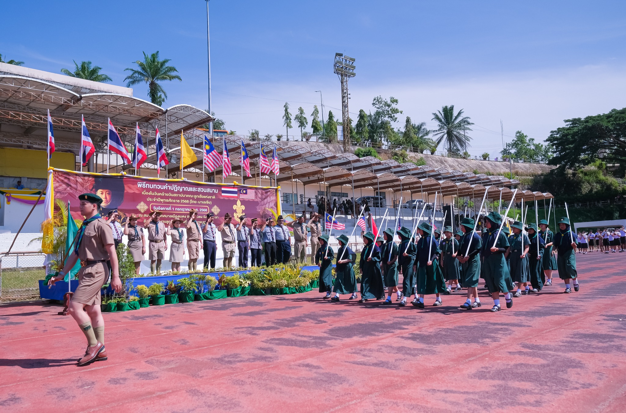 วันที่ 1 ก.ค. 2568 ที่สนามกีฬากลางเทศบาลเมืองเบตง จ.ยะลา นายสราวุธ ยอดรักษ์ ผู้อำนวยการสำนักงานลูกเสือเขตพื้นที่การศึกษายะลา เขต 3 เป็นประธานในพิธีสวนสนามและทบทวนคำปฏิญาณ เนื่องในวันคล้ายวันสถาปนาคณะลูกเสือแห่งชาติ (ไทย-มาเลเซีย) ประจำปี 2568 เพื่อน้อมรำลึกในพระมหากรุณาธิคุณพระบาทสมเด็จ พระมงกุฎเกล้าเจ้าอยู่หัว พระผู้พระราชทานกำเนิดลูกเสือไทย แสดงความจงรักภักดีต่อพระบาทสมเด็จพระเจ้าอยู่หัวประมุขของคณะลูกเสือแห่งชาติ โดยมีหัวหน้าสวนราชการ ผู้บริหารสถานศึกษา ผู้กำกับลูกเสือ และลูกเสือ เนตรนารี จากประเทศไทย มาเลเซีย จากรัฐเปรัค กับ รัฐกลันตัน เข้าร่วมพิธี