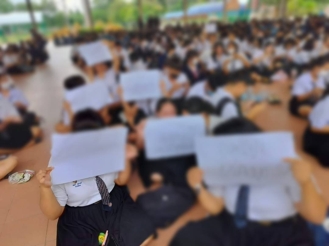 เมื่อเวลา 08.30 น วันจันทร์ที่ 10 กค 66 บรรยากาศที่อาคารโดม 2 พบนักเรียน ทั้งหมดนั่งรวมตัวกัน พร้อมชูป้าย ออกไป ออกไปไอ้ขี้เมา สารพัดคำขับไล่ น้องๆนักเรียนใช้กระดาษเขียนด้วยหมึก จากกรณี ที่ปรากฏตามสื่อโซเชียล และสื่อทีวี สื่อทุกแขนง ไปเมื่อวันศุกร์และเสาร์ที่ผ่านมา