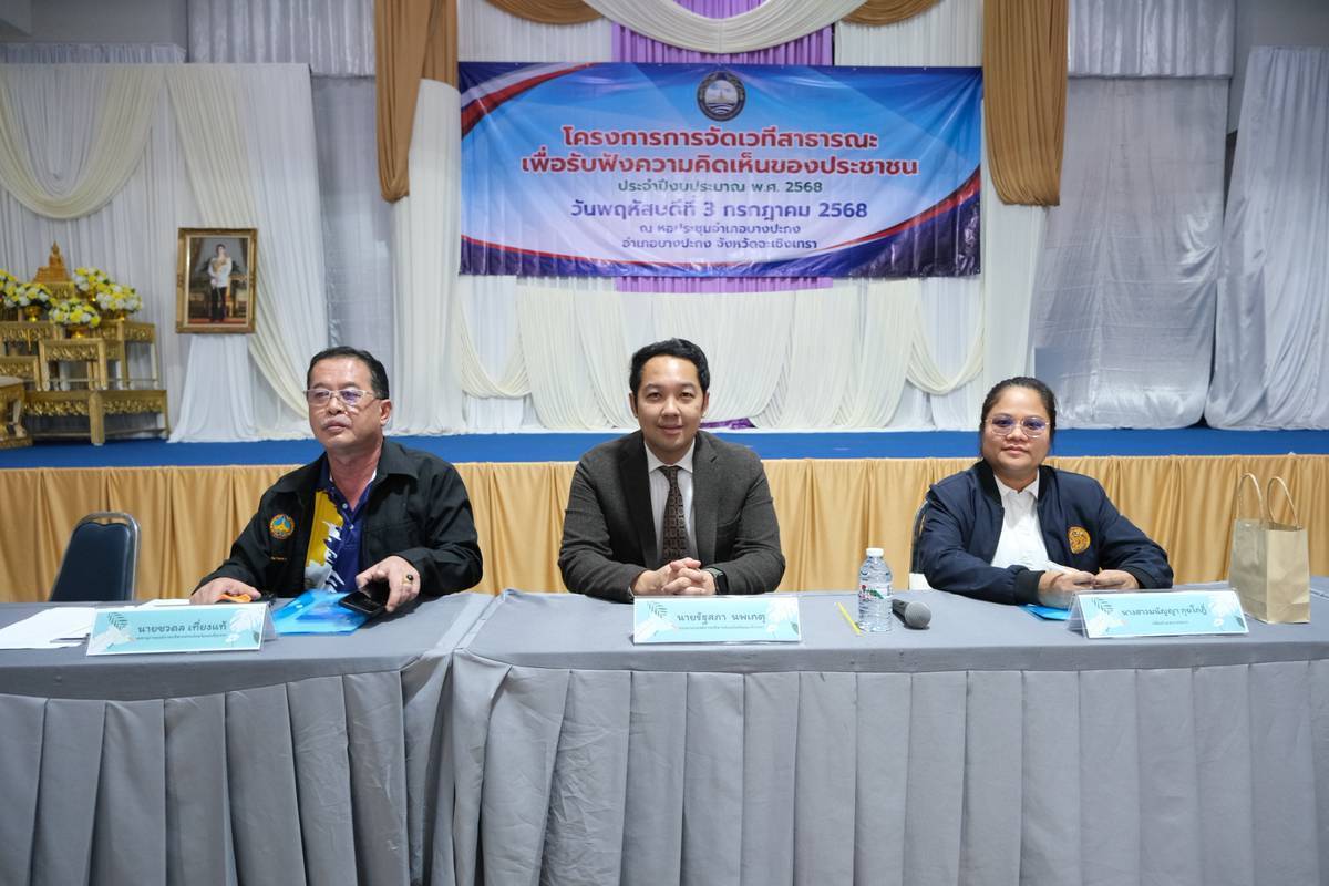 วันที่ 3 กรกฎาคม 2568 นายกลยุทธ ฉายแสง นายกองค์การบริหารส่วนจังหวัดฉะเชิงเทรา มอบหมายให้ ดร.รัฐสภา นพเกตุ รองนายกองค์การบริหารส่วนจังหวัดฉะเชิงเทรา เข้าร่วมโครงการการจัดเวทีสาธารณะเพื่อรับฟังความคิดเห็นของประชาชน ณ หอประชุมอำเภอบางปะกง จังหวัดฉะเชิงเทรา