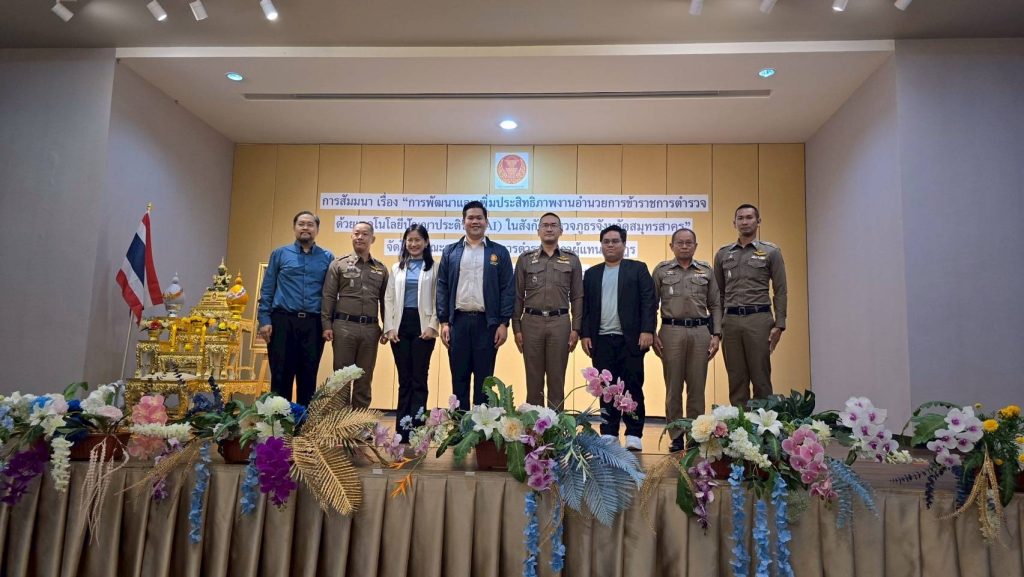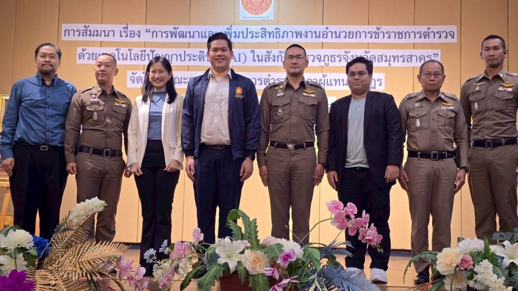 วันที่ 4 กรกฎาคม 2568 – ตำรวจภูธรจังหวัด สมุทรสาคร โดยการอำนวยการของ พลตำรวจตรี ธีระเดช อธิภัคกุล ผู้บังคับการตำรวจภูธรจังหวัดสมุทรสาคร และการขับเคลื่อนของ พันตำรวจเอก กัมพล รัตนประทีป รองผู้บังคับการตำรวจภูธรจังหวัดสมุทรสาคร ร่วมกับ คณะกรรมาธิการตำรวจ สภาผู้แทนราษฎร จัดการอบรมสัมมนาเชิงปฏิบัติการในหัวข้อ “การพัฒนาและเพิ่มประสิทธิภาพงานอำนวยการข้าราชการตำรวจด้วยเทคโนโลยีปัญญาประดิษฐ์ (AI)” ณ ห้องแกรนด์นรสิงห์ โรงแรมแกรนด์ อินเตอร์โฮเต็ล อำเภอเมืองสมุทรสาคร จังหวัดสมุทรสาคร