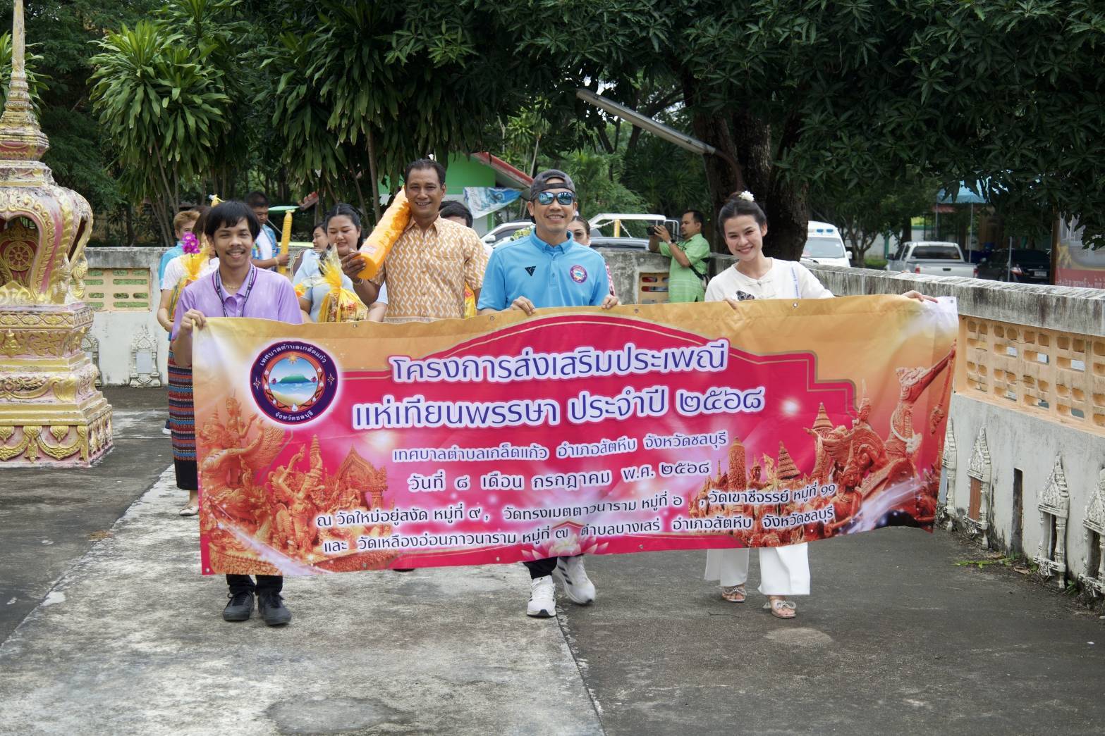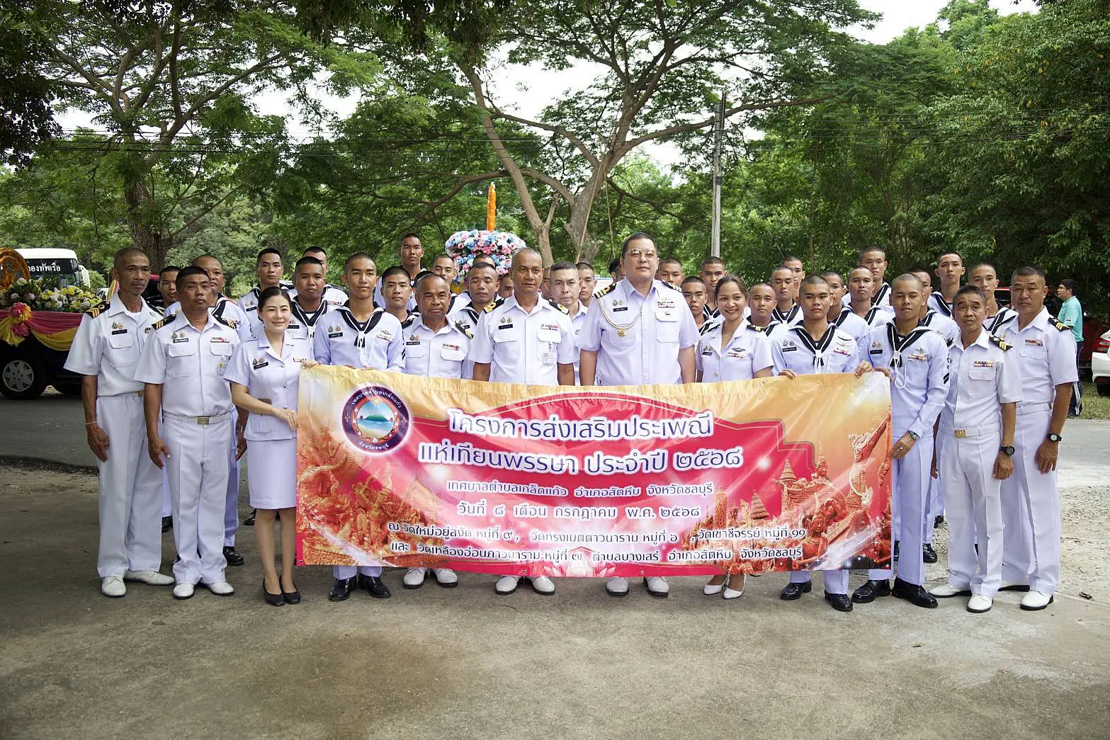 วันที่ 8 ก.ค.68 นายสมบัติ แก้วปทุมนายกเทศมนตรีตำบลเกล็ดแก้ว ได้นำคณะผู้บริหาร สมาชิกสภา หัวหน้าส่วนราชการ ข้าราชการ พนักงาน ลูกจ้าง ข้าราชการทหารเรือจากโรงเรียนชุมพลทหารเรือ,ศูนย์ฝึกทหารใหม่ ประชาชน นักเรียนโรงเรียนบ้านเขาชีจรรย์ ในพื้นที่ ร่วมขบวนแห่ ถวายเทียนพรรษา ณ วัดใหม่อยู่สงัด ต.บางเสร่ อ.สัตหีบ จ.ชลบุรี ประจำปี 2568 เพื่อเป็นการแสดงออกถึงความสามัคคีและรักษาประเพณีวัฒนธรรมอันดีงามที่สืบทอดกันมายาวนาน ถือเป็นกิจกรรมที่เกี่ยวข้องกับโครงการวันสำคัญทางพระพุทธศาสนาด้วย