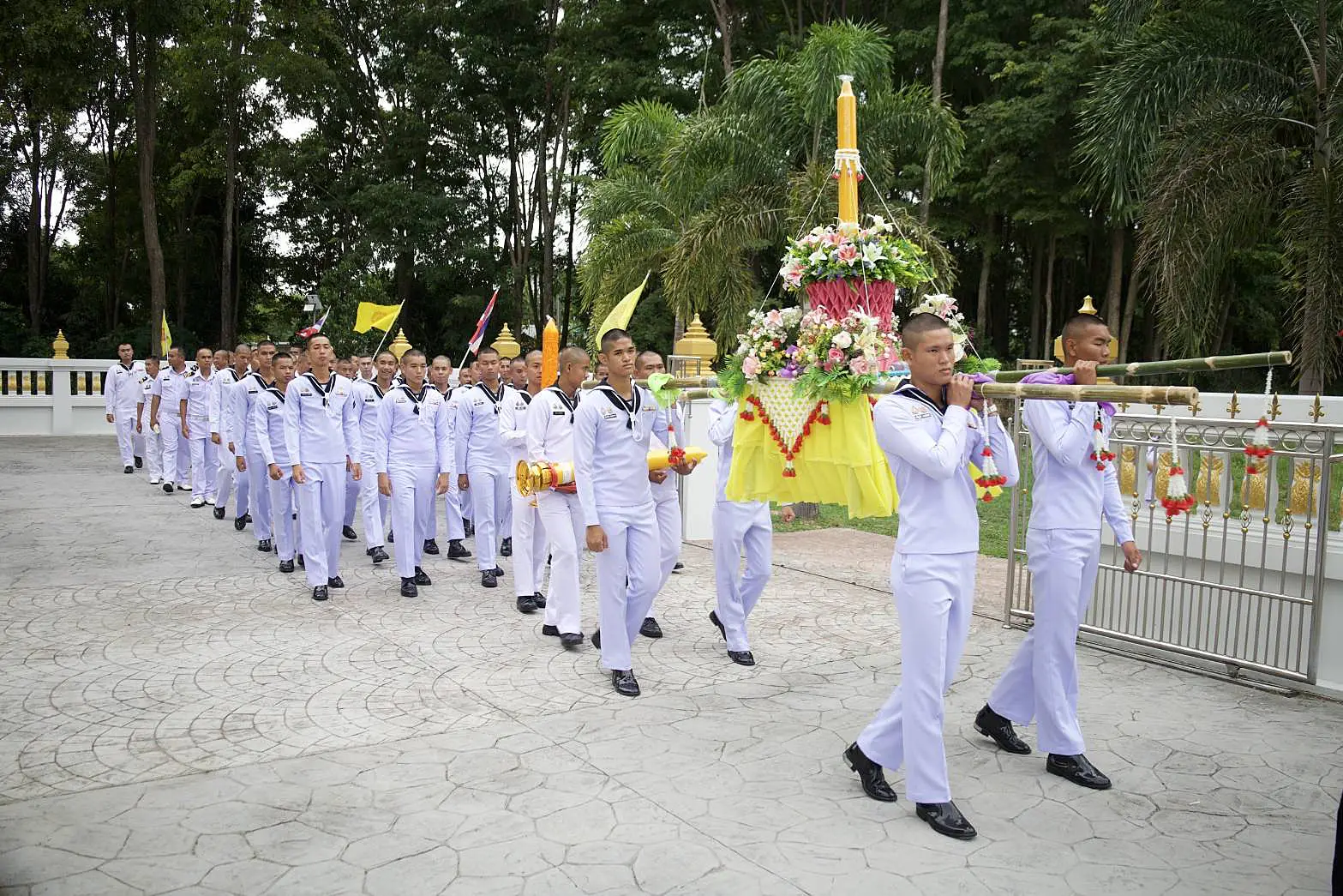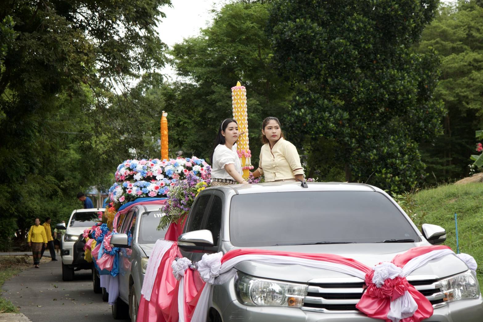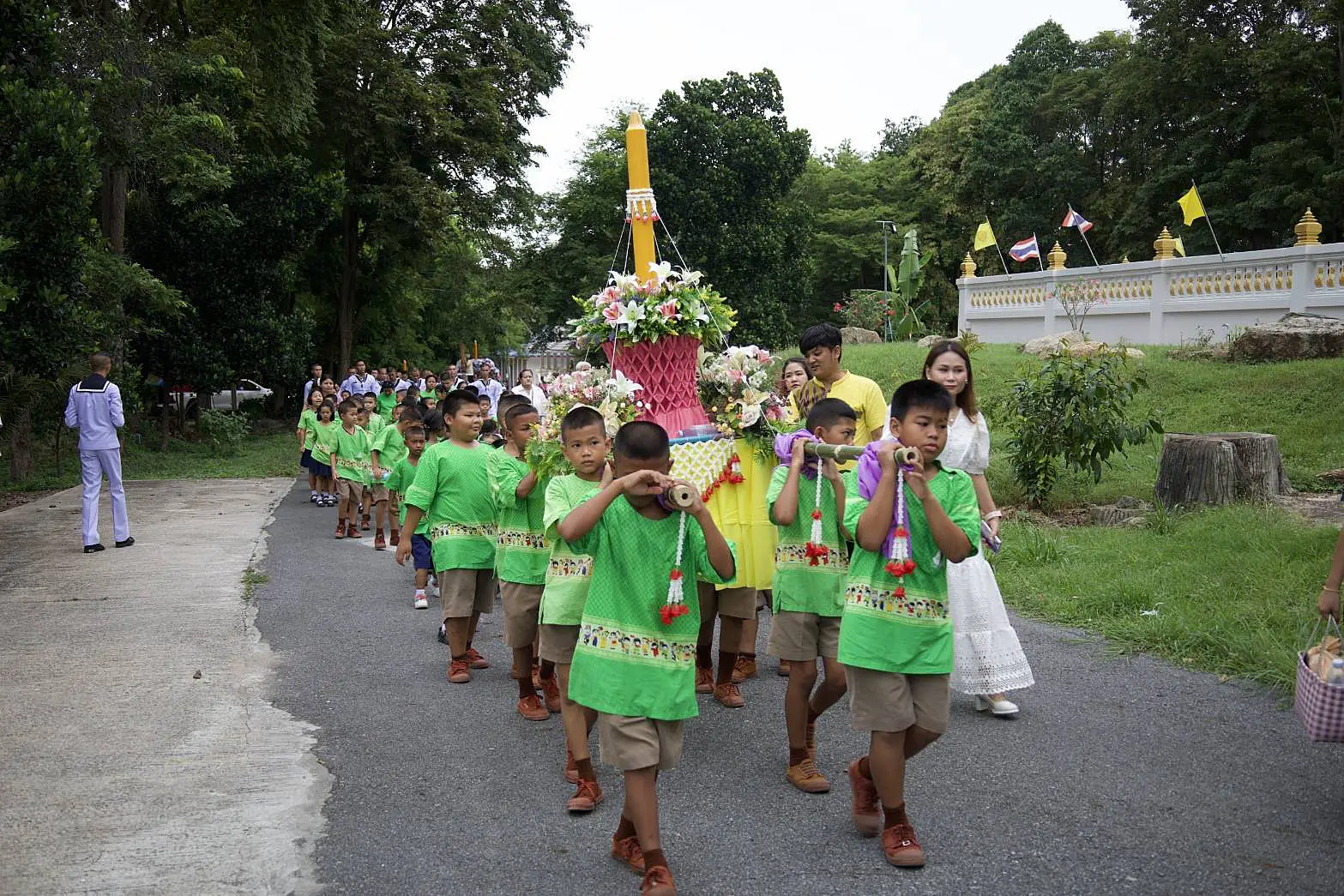 ซึ่งบรรยากาศเต็มไปด้วยความสนุกสนาน มีนางรำ จากชุมชม กลองยาว ขบวนรถแห่ ร่วมบรรเลง พร้อมขบวนแห่เทียนพรรษารอบโบสถ์ ก่อนจะนำเทียนพรรษาไปถวาย บนศาลาการเปรียญ ก่อนที่ คณะผู้บริหาร สมาชิกสภา หัวหน้าส่วนราชการ ข้าราชการ พนักงาน ลูกจ้าง ข้าราชการทหารเรือ ประชาชน นักเรียน ในพื้นที่ ก่อนจะร่วมกันไปถวายเทียนพรรษา ตามวัดต่างๆในพื้นที่ได้แก่ วัดทรงเมตตาวนาราม ,วัดเหลืองอ่อนภาวนาราม,วัดเขาชีจรรย์
