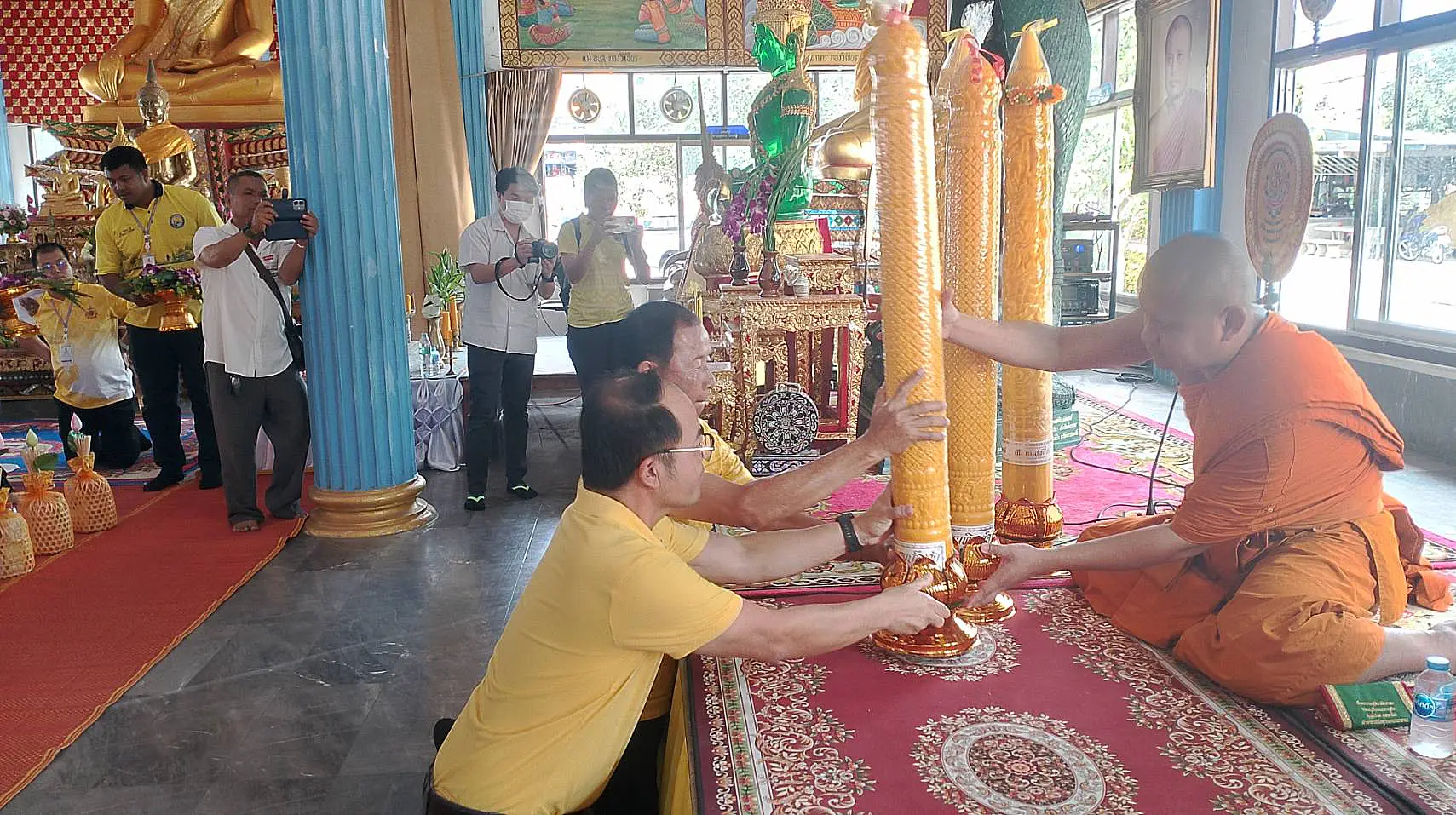 โดยถวายเทียนจำนำพรรษา แด่พระครูปลัด ธนากร ธมมฺปาโล เจ้าอาวาสวัดห้วยปราบ รวมถึงถวายจตุปัจจัยไทยธรรม พระสงฆ์5รูป สามเณร 1 รูป หลังจากนั้นได้พากันเดินทางไปถวายเทียนจำนำพรรษาแด่ พระครูสุทธิพงศ์มุนี เจ้าอาวาสวัดศรีพุ่มโพธิ์วัดศรีพุ่มโพธิ์รวมถึงถวายจตุปัจจัยไทยธรรม พระสงฆ์ 6 รูป และนำเทียนจำนำพรรษาไปถวายแด่ พระครูสุภัทรธรรมธาดา เจ้าอาวาสวัดพันเสด็จใน รวมถึงถวายจตุปัจจัยไทยธรรม พระสงฆ์ 9 รูป
