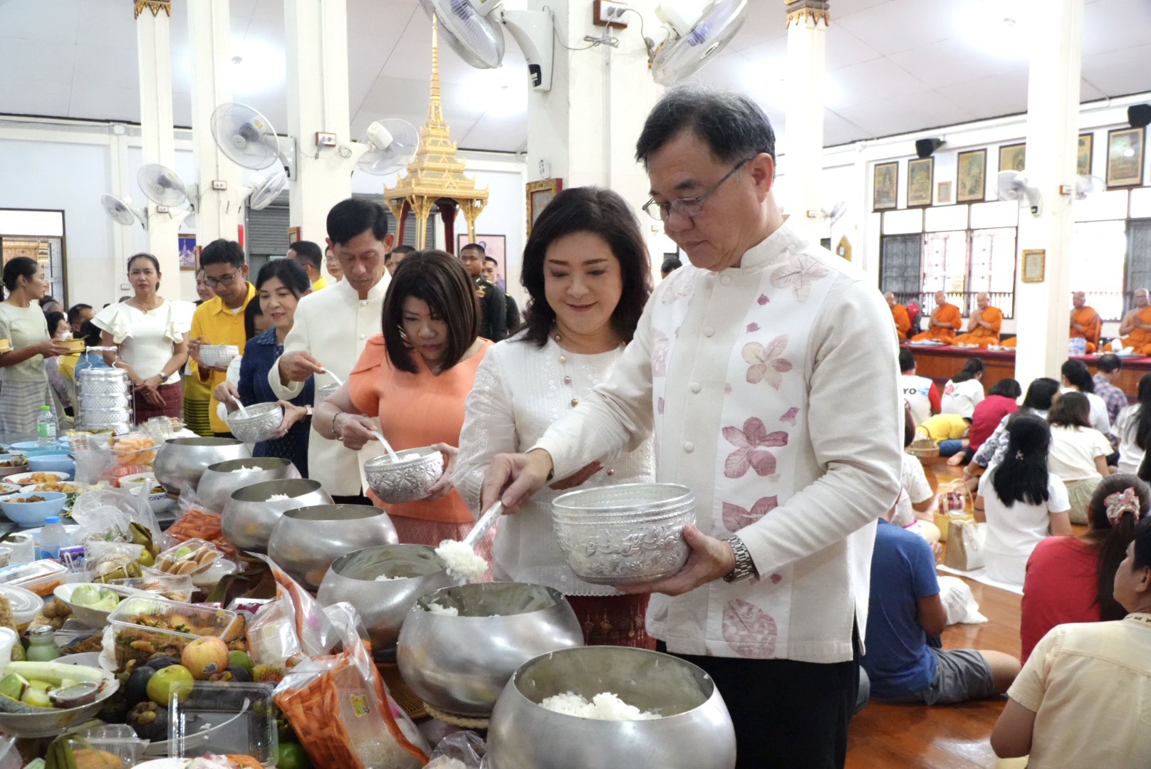 โดยในช่วงเช้า ณ วัดโสธรวรารามวรวิหาร อำเภอเมือง จังหวัดฉะเชิงเทรา นายขจรเกียรติ รักพานิชมณี ผู้ว่าราชการจังหวัดฉะเชิงเทรา เป็นประธานฝ่ายฆราวาสในพิธีทำบุญตักบาตร โดยมี พระเทพภาวนาวชิรคุณ วิ. เจ้าอาวาสวัดโสธรวราราม วรวิหาร เจ้าคณะจังหวัดฉะเชิงเทรา เป็นประธานฝ่ายสงฆ์ พร้อมด้วยนางปิติมา รักพานิชมณี นายกเหล่ากาชาดจังหวัดฉะเชิงเทรา นางสาวฉัตรประอร นิยม นายประสิทธิ์ อินทโชติ รองผู้ว่าราชการจังหวัดฉะเชิงเทรา หัวหน้าส่วนราชการ ข้าราชการ และประชาชนทุกหมู่เหล่า ร่วมทำบุญใส่บาตรพระสงฆ์ เพื่ออุทิศส่วนกุศลและร่วมอนุรักษ์ขนบธรรมเนียมอันดีงามของชาวพุทธ