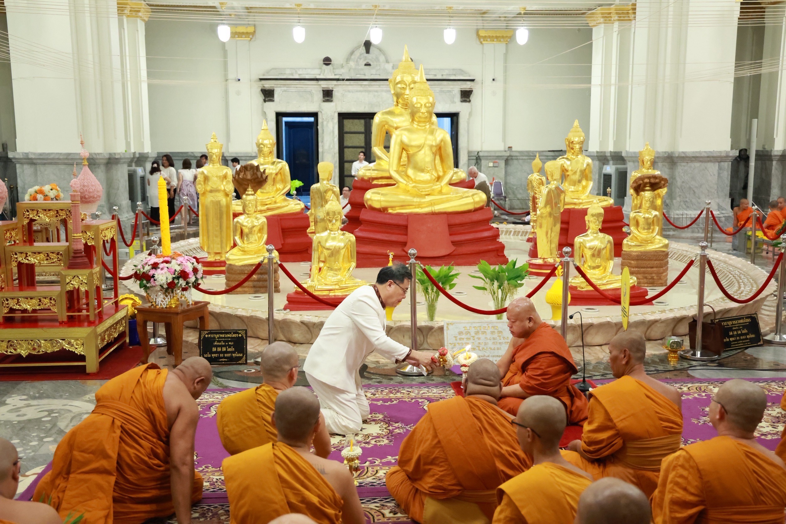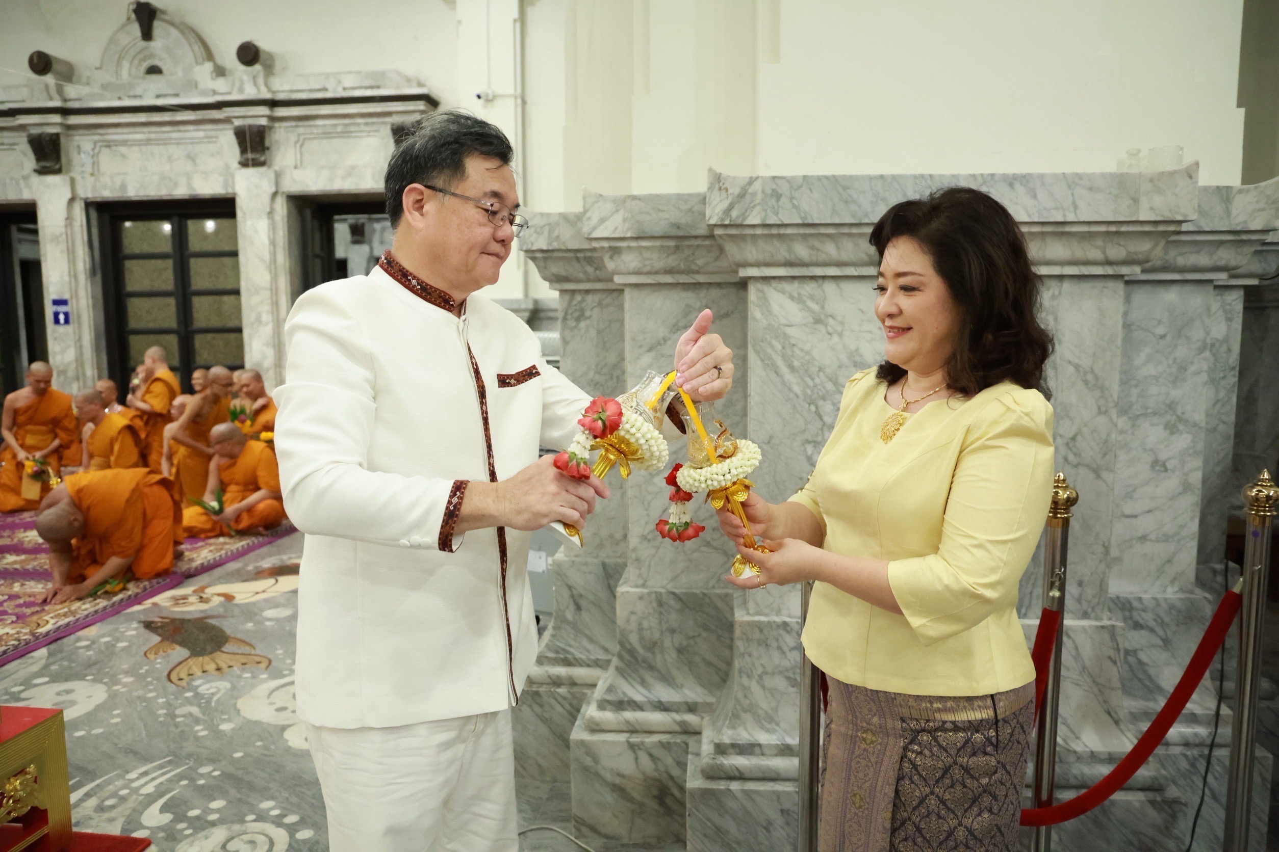 ภายในพิธีผู้ว่าราชการจังหวัด ได้นำจุดธูปเทียนบูชาพระรัตนตรัย กล่าวคำบูชาวันอาสาฬหบูชา และนำเวียนเทียนรอบพระอุโบสถ เพื่อรำลึกถึงเหตุการณ์สำคัญในพุทธศาสนา คือ วันที่พระพุทธเจ้าทรงแสดงปฐมเทศนา “ธัมมจักกัปปวัตตนสูตร” แก่ปัญจวัคคีย์ ส่งผลให้มีพระสงฆ์รูปแรกในโลก ถือเป็นวันที่ครบองค์พระรัตนตรัย คือ พระพุทธ พระธรรม และพระสงฆ์