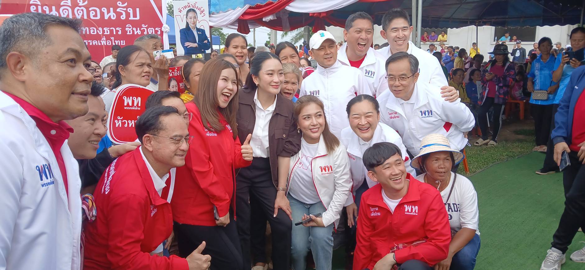 เมื่อวันที่ 11 ก.ค.2568 เวลา 15.45 น. ที่ ต.ท่าอ่าง อ.โชคชัย จ.นครราชสีมา นางสาวแพทองธาร ชินวัตร หัวหน้าพรรคเพื่อไทย พร้อมนายประเสริฐ จันทรวงทอง รองนายกรัฐมนตรี และรัฐมนตรีว่าการกระทรวงดิจิทัลเพื่อเศรษฐกิจและสังคม นางสาวสุดาวรรณ หวังศุภกิจโกศล รัฐมนตรีว่าการกระทรวงอุดมศึกษา วิทยาศาสตร์ วิจัยและนวัตกรรม สมาชิกสภาผู้แทนราษฎรจังหวัดนครราชสีมา ลงพื้นที่รับฟังปัญหา ประชาชน ชาว ต.ท่าอ่าง อำเภอโชคชัย จ.นครราชสีมา โดยมีนายไชยวัฒน์ ชื่นโกสุม ผู้ว่าราชการจังหวัดนครราชสีมา ผู้บัญชาการตำรวจภูธร ภาค 3 นายกองค์การบริหารส่วนจังหวัดนครราชสีมา นายอำเภอโชคชัย กำนัน ผู้ใหญ่บ้าน ประชาชนชาวอำเภอโชคชัยให้การต้อนรับ