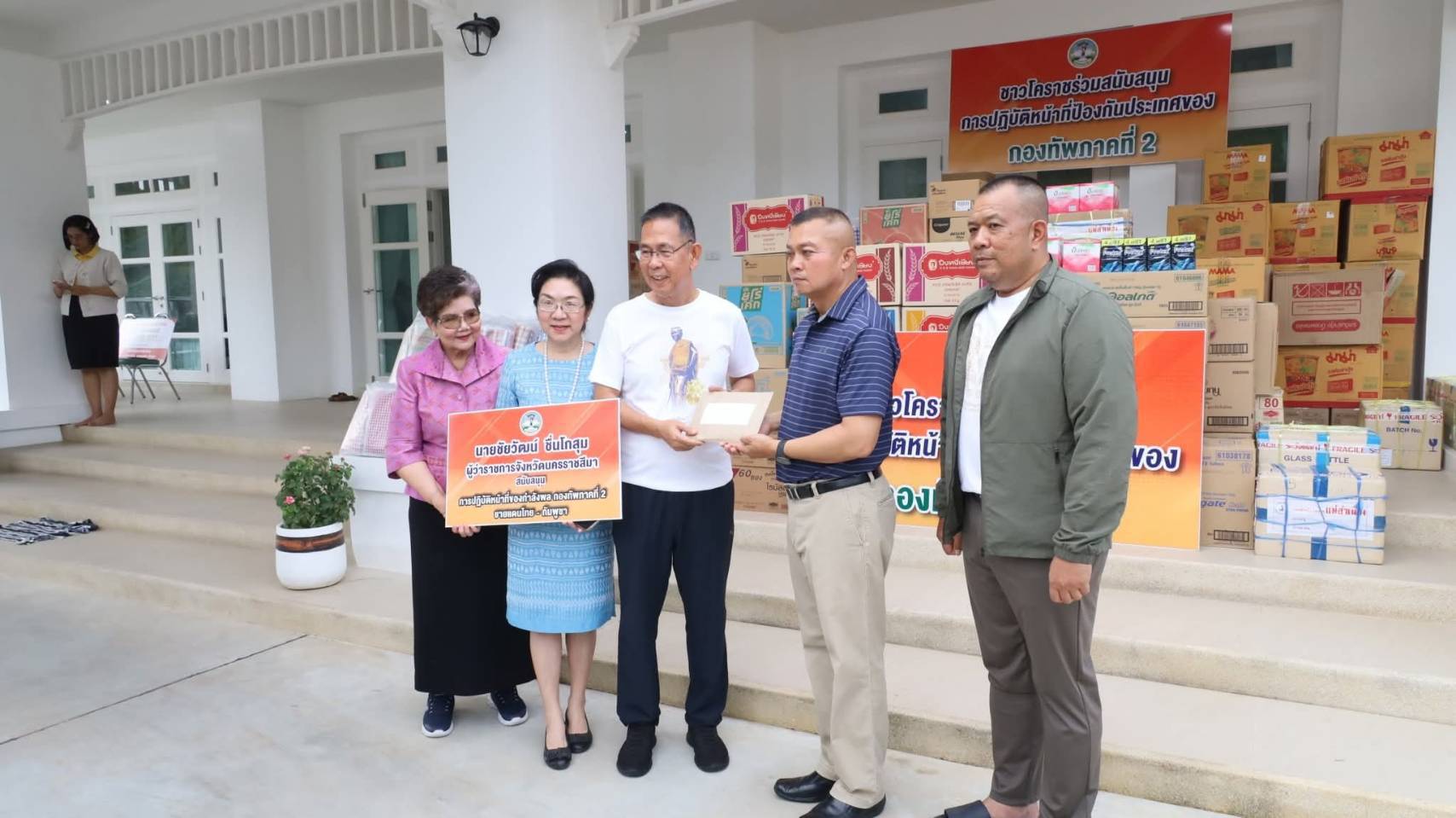 คุณแดง ธัญญา – คุณพงษ์พัฒน์ วชิรบรรจง “ และภาคเอกชนใน จังหวัดนครราชสีมา ร่วมมอบสิ่งของให้กับแม่ทัพภาคที่ 2 เพื่อเป็นขวัญและกำลังใจในการปฏิบัติหน้าที่ของทหารตามแนวชายแดนไทยกัมพูชา