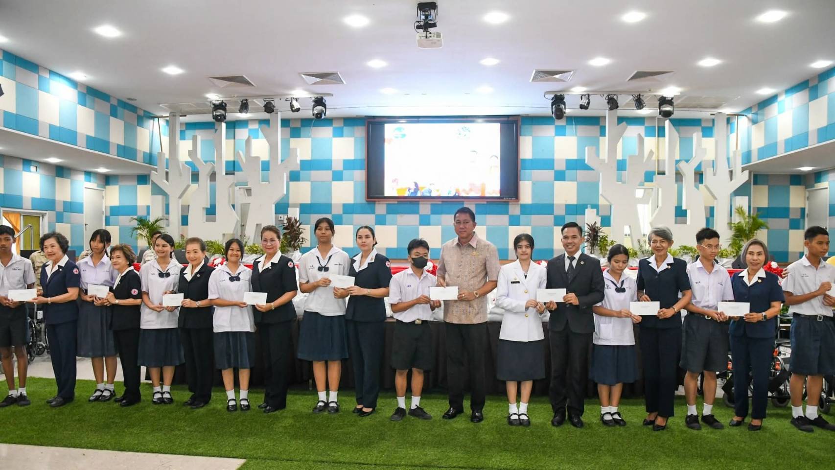 3. อุปกรณ์ดูแล ได้แก่ รถเข็นวีลแชร์ 18 คัน, ไม้เท้า 3 ขา 5 อัน, วอร์คเกอร์ช่วยเดิน 2 ตัว, ที่นอนลม 11 ชุด และเก้าอี้นั่งถ่าย 4 ตัว4. ทุนการศึกษาแก่เด็กและเยาวชน จำนวน 40 ราย5. ชุดนักเรียนและรองเท้านักเรียน จำนวน 100 ราย6. รถเข็นวีลแชร์สำหรับผู้พิการ (สนับสนุนโดยสำนักงานพัฒนาสังคมและความมั่นคงของมนุษย์จังหวัดชลบุรี) จำนวน 7 ราย