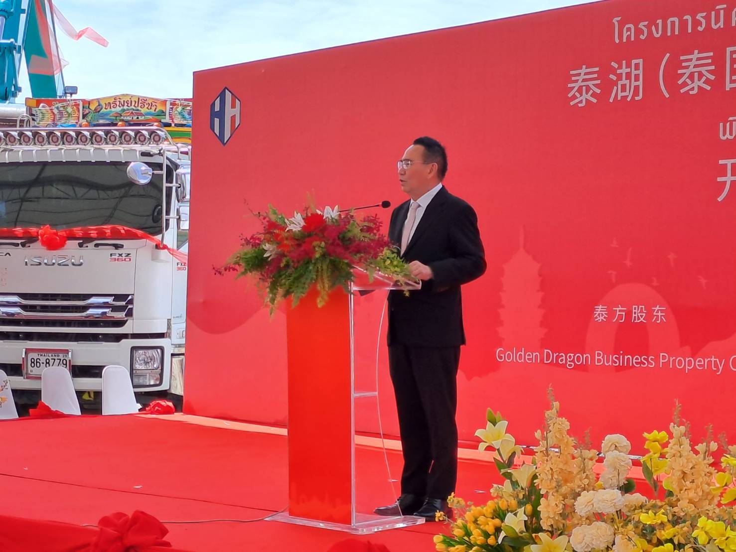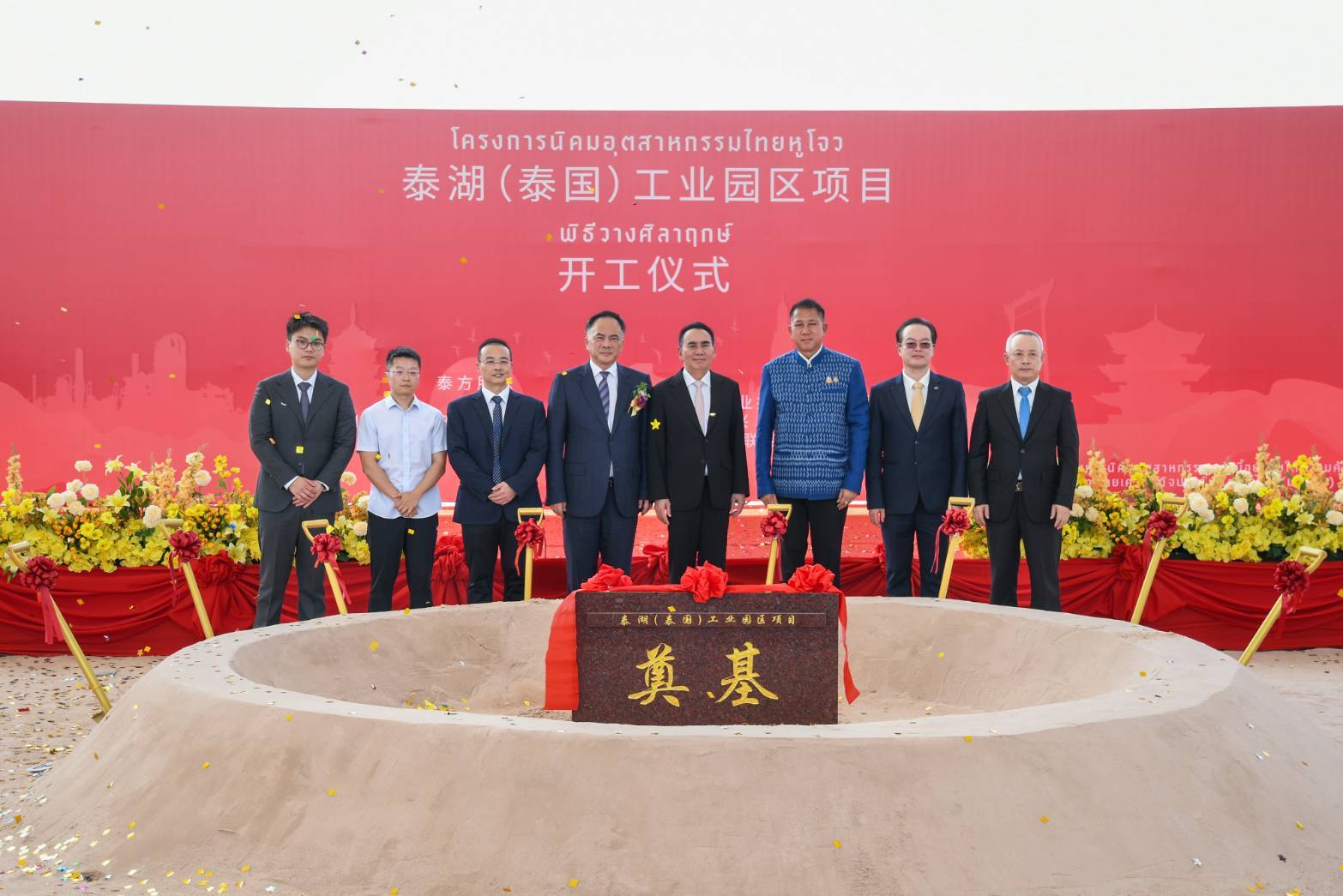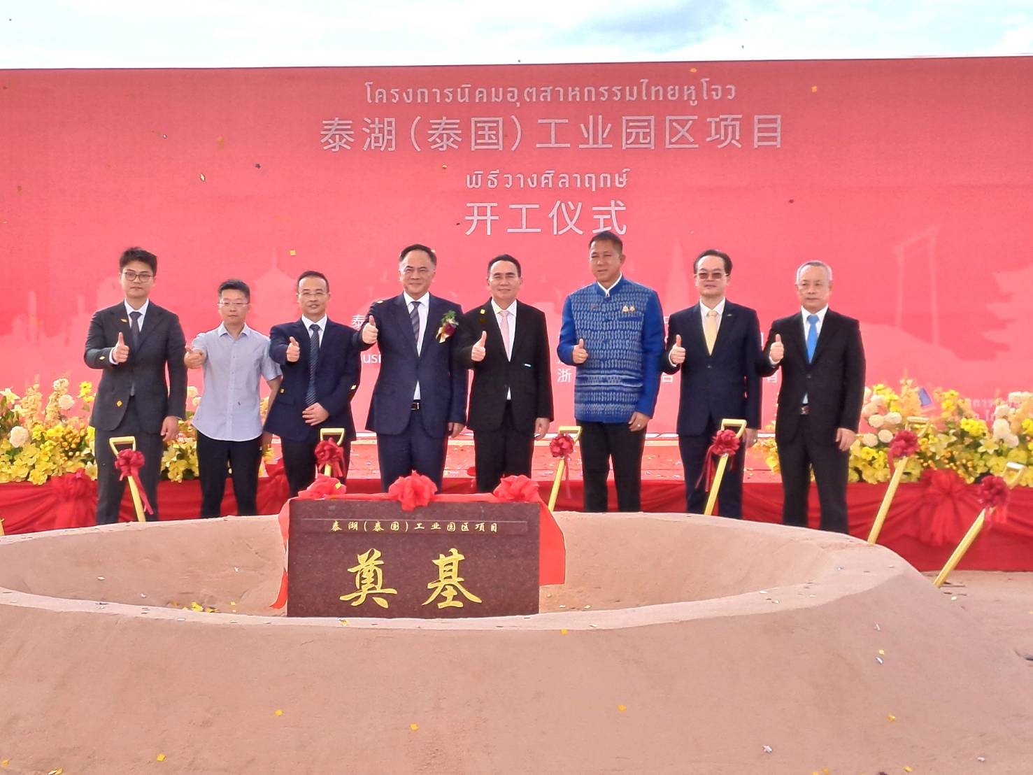 เมื่อวันเสาร์ที่ 19 กรกฎาคม 2568 เวลา 14.08 น. ณ พื้นที่โครงการนิคมอุตสาหกรรมไทยหูโจว ตำบลนาวังหิน อำเภอพนัสนิคม จังหวัดชลบุรี นายธวัชชัย ศรีทอง ผู้ว่าราชการจังหวัดชลบุรี ร่วมเป็นเกียรติในพิธีเปิดและวางศิลาฤกษ์โครงการก่อสร้างนิคมอุตสาหกรรมไทยหูโจวอย่างเป็นทางการ โดยมี นายเดชอิศม์ ขาวทอง รัฐมนตรีช่วยว่าการกระทรวงมหาดไทย เป็นประธานในพิธี ในโอกาสนี้มี นางสาวอรุณรัตน์ พุ่มเจริญ นายอำเภอพนัสนิคม,หัวหน้าส่วนราชการ, ผู้บริหาร อปท. กำนัน ผู้ใหญ่บ้าน ผู้บริหารบริษัท โกลเด้น ดราก้อน บิซิเนส พร็อพเพอร์ตี้ จำกัด ตลอดจนเจ้าหน้าที่จากหน่วยงานที่เกี่ยวข้อง เข้าร่วมในพิธี