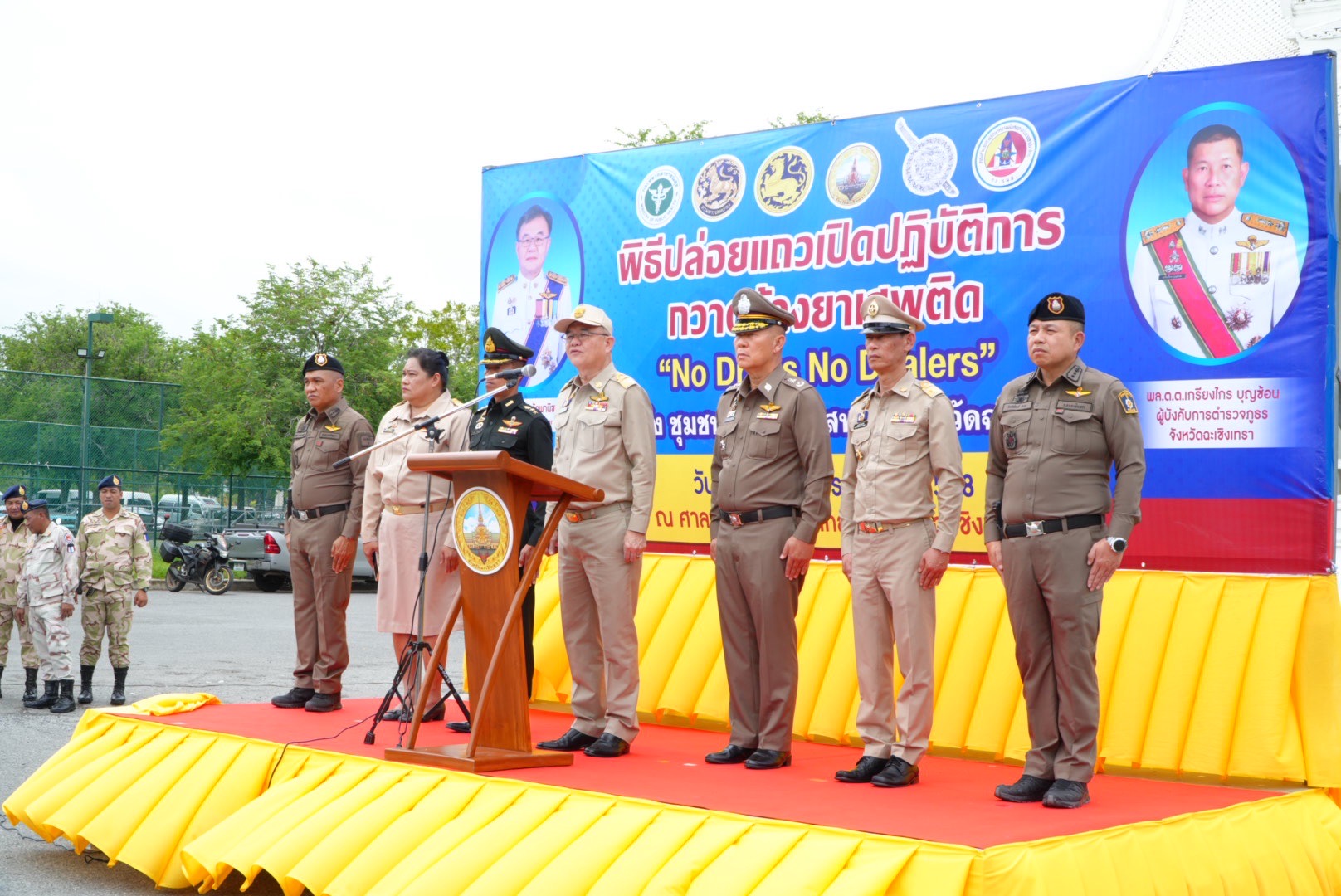 ผู้ว่าราชการจังหวัดฉะเชิงเทรา เป็นประธานพิธีปล่อยแถวเจ้าหน้าที่เปิดปฏิบัติการกวาดล้างยาเสพติด ภายใต้ชื่อ