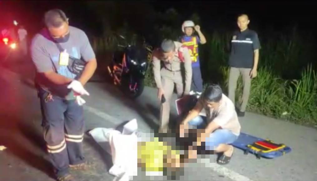ในจุดเกิดเหตุ ยังพบร่างแรงงานต่างด้าวชายสูงวัยอีก 1 ราย นอนหมดสติจมกองเลือด มีบาดแผลฉกรรจ์ที่ศรีษาะ อาสาสมัครกู้ภัยพนมจุดแปลงยาว ตรวจสอบสัญญาณชีพไม่พบสัญญาณชีพเสียชีวิตในที่เกิดเหตุ และพบรถจักรยานยนต์ฮอนดร้าเวฟสีดำ 1 กค สุรินทร์ 7852 พลิคคว่ำ ห่างจากผู้เสียชีวิตไปประมาณ 7 เมตร และยังพบกระเป๋าสะพายผู้เสียชีวิต ตรวจสอบไม่พบบัตร หรือเอกสารใดๆ ที่พอจะแสดงชื่อ สกุล ได้เลย พบเพียงเงินธนบัตร คล้ายเป็นเงินสกุลประเทศกัมพูชา