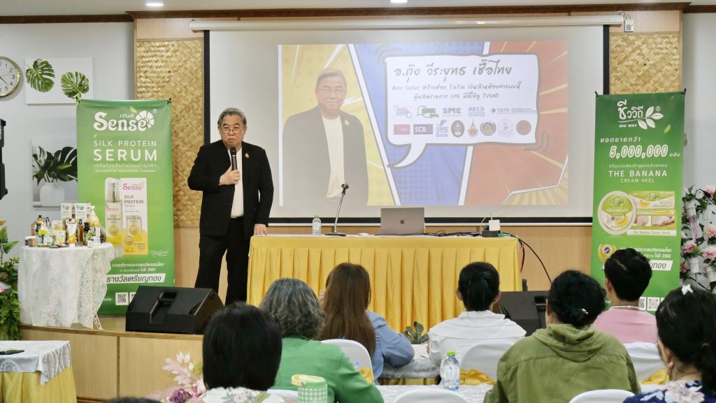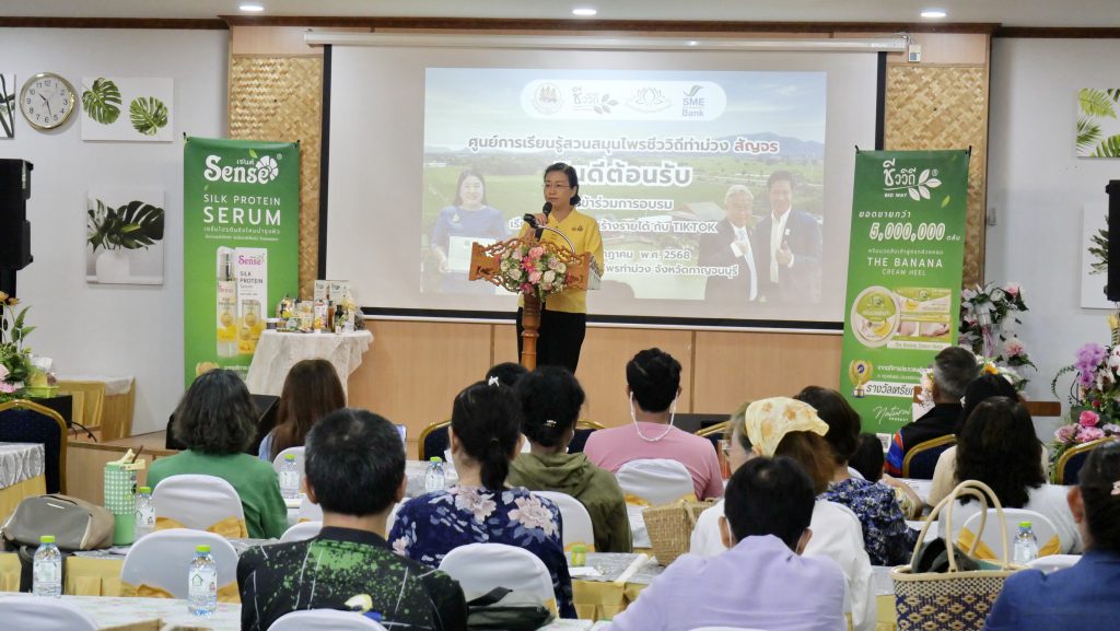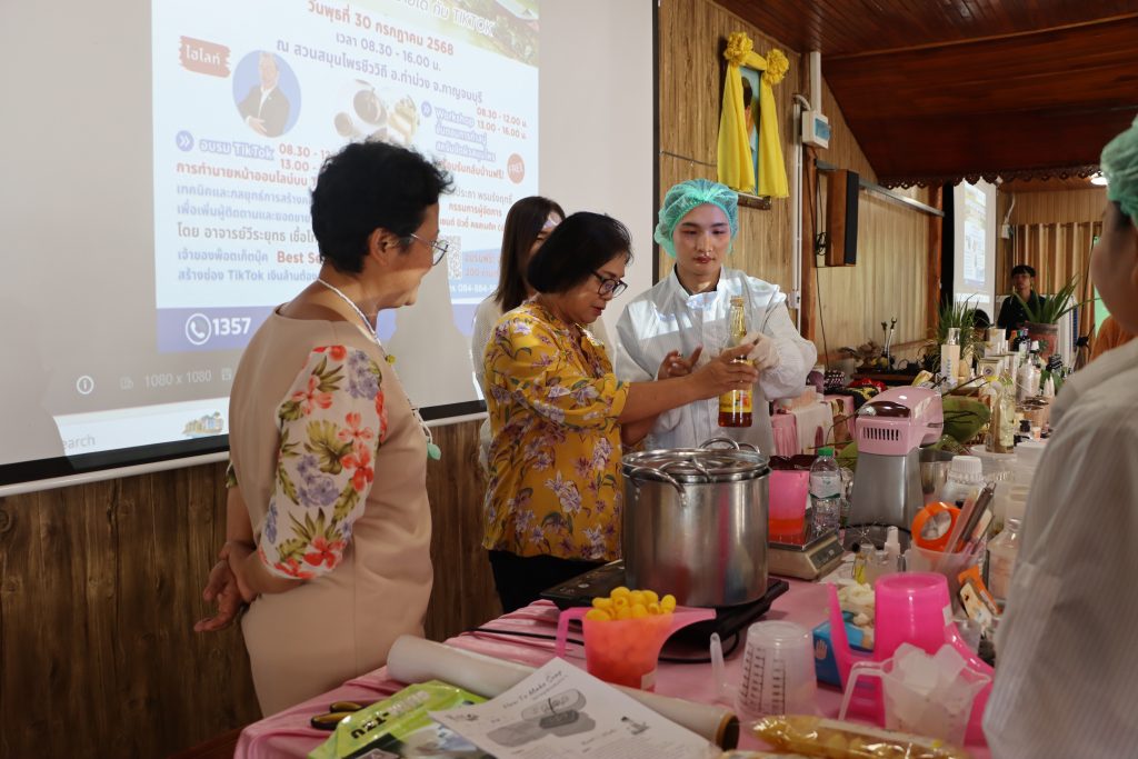 เมื่อวันที่ 30 กรกฎาคม 2568 ณ ศูนย์เรียนรู้สวนสมุนไพรชีววิถีท่าม่วง จังหวัดกาญจนบุรี ได้จัดกิจกรรมอบรมเชิงปฏิบัติการ “ปั้นรายได้ TikTok – เวิร์กช็อปสมุนไพร” ภายใต้โครงการ สวนสมุนไพรชีววิถี ท่าม่วง สัญจร ครั้งที่ 3 เพื่อเปิดโอกาสให้ประชาชนและผู้ประกอบการ ได้เสริมทักษะ เพิ่มช่องทางสร้างรายได้ในโลกยุคดิจิทัล โดยมีผู้เข้าร่วม กว่า 200 คน