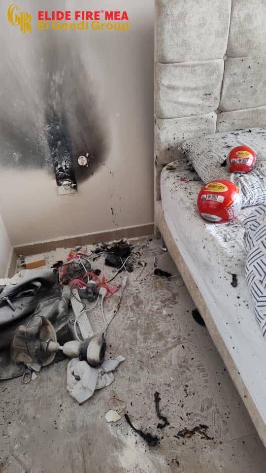 เหตุเพลิงไหม้ดังกล่าวเกิดจากไฟฟ้าลัดวงจรในขณะที่ผู้อยู่อาศัยกำลังหลับ เปลวไฟลุกลามอย่างรวดเร็ว แต่เนื่องจากภายในห้องมีการติดตั้งลูกบอลดับเพลิง ELIDE FIRE ไว้ เมื่อเปลวไฟพุ่งขึ้น ลูกบอลจึงทำงานโดยอัตโนมัติภายในเวลาเพียง 3 วินาที พร้อมทั้งส่งเสียงเตือน ทำให้ผู้อยู่อาศัยตื่นทันที และทีมดับเพลิงที่ได้รับสัญญาณเตือนก็มาถึงจุดเกิดเหตุ พบว่าไฟสงบลงแล้ว ไม่ลุกลามไปยังห้องข้างเคียง จึงสามารถป้องกันความเสียหายได้อย่างมีประสิทธิภาพ
