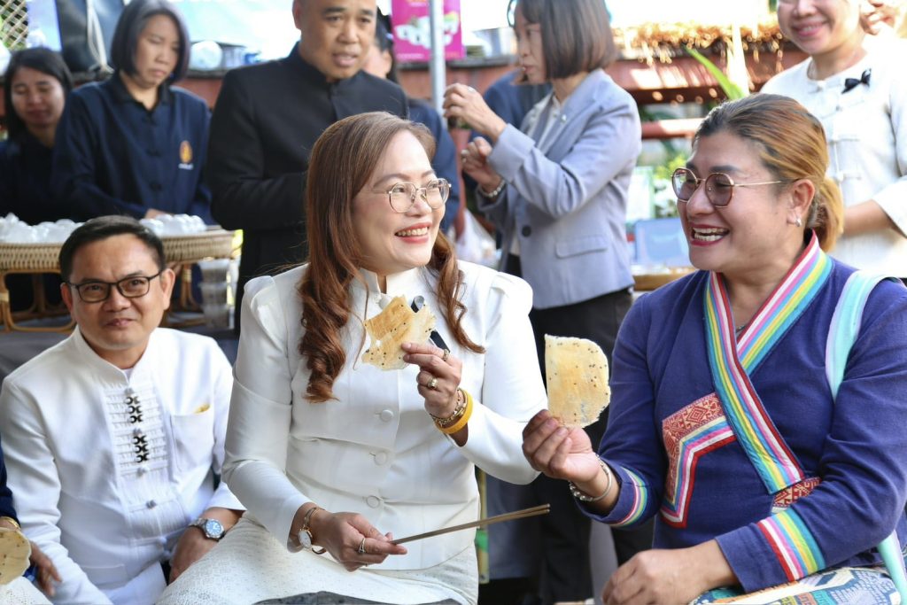 ในโอกาสนี้ ดร.เกศทิพย์ ศุภวานิช อธิบดีกรมส่งเสริมการเรียนรู้ ลงพื้นที่ติดตามผลการดำเนินงาน เยี่ยมชมบูธสาธิตขนมไทยโบราณจากแต่ละอำเภอ พร้อมให้กำลังใจชุมชนที่ร่วมสืบสานภูมิปัญญาท้องถิ่น โดยมี นายภาณุ วงษ์ถาวรเรือง ผู้อำนวยการสำนักงานส่งเสริมการเรียนรู้ประจำจังหวัดลำพูน ผู้บริหาร และบุคลากรให้การต้อนรับและรายงานผลการจัดงาน