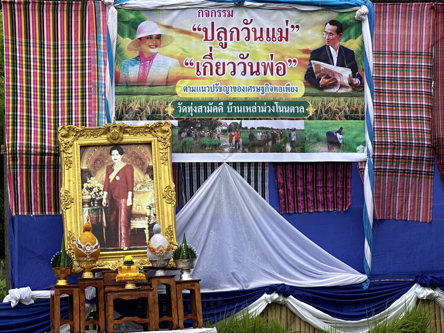 ซึ่งวิถีชีวิตเกษตรกรชาวนาไทยในทุกภูมิภาค ที่ร่วมโครงการปลูกข้าว ในช่วงเดือนสิงหาคม ถึงเดือนธันวาคม ซึ่งเป็นช่วงที่เหมาะสมกับฤดูกาล เรื่องราววัฒนธรรมประเพณีจาก “ข้าว” การเลือกสายพันธุ์ข้าวที่เหมาะสมแต่ละพื้นที่ การปรับปรุงสายพันธุ์เพื่อให้ได้ข้าวที่มีคุณภาพและเพิ่มผลผลิตข้าวต่อไร่ วิถีเกษตรกรรมจากอดีตสู่ปัจจุบัน การลดต้นทุน การลดความเสี่ยงจากภัยแล้ง การเพิ่มมูลค่าผลผลิต อันจะนำไปสู่ความสุขอันยั่งยืน ซึ่งเป็นการร่วมกันจัดกิจกรรม เอาแรง ดำนา ปลูกเดือนวันแม่ เกี่ยววันพ่อ ในนาแปรงสาธิจำนวน 1 ไร่ ของ นายสุภาพ หลอดเข็ม และ ผนวกบูรณาการ โครงการถนนสายวัฒนธรรมอำเภอรัตนบุรี นำสู่ ทาน ศีล ภาวนา และการสงเคราะห์ MOU พลังบวร 1 ตำบล 1 หมู่บ้านยั่งยืน อำเภอรัตนบุรี จังหวัดสุรินทร์ ระหว่างวัดและชุมชนให้มีความสุขอย่างยั่งยืน และขจัดความยากจน พัฒนาคนทุกช่วงวัย ไม่ทิ้งใครไว้ข้างหลัง