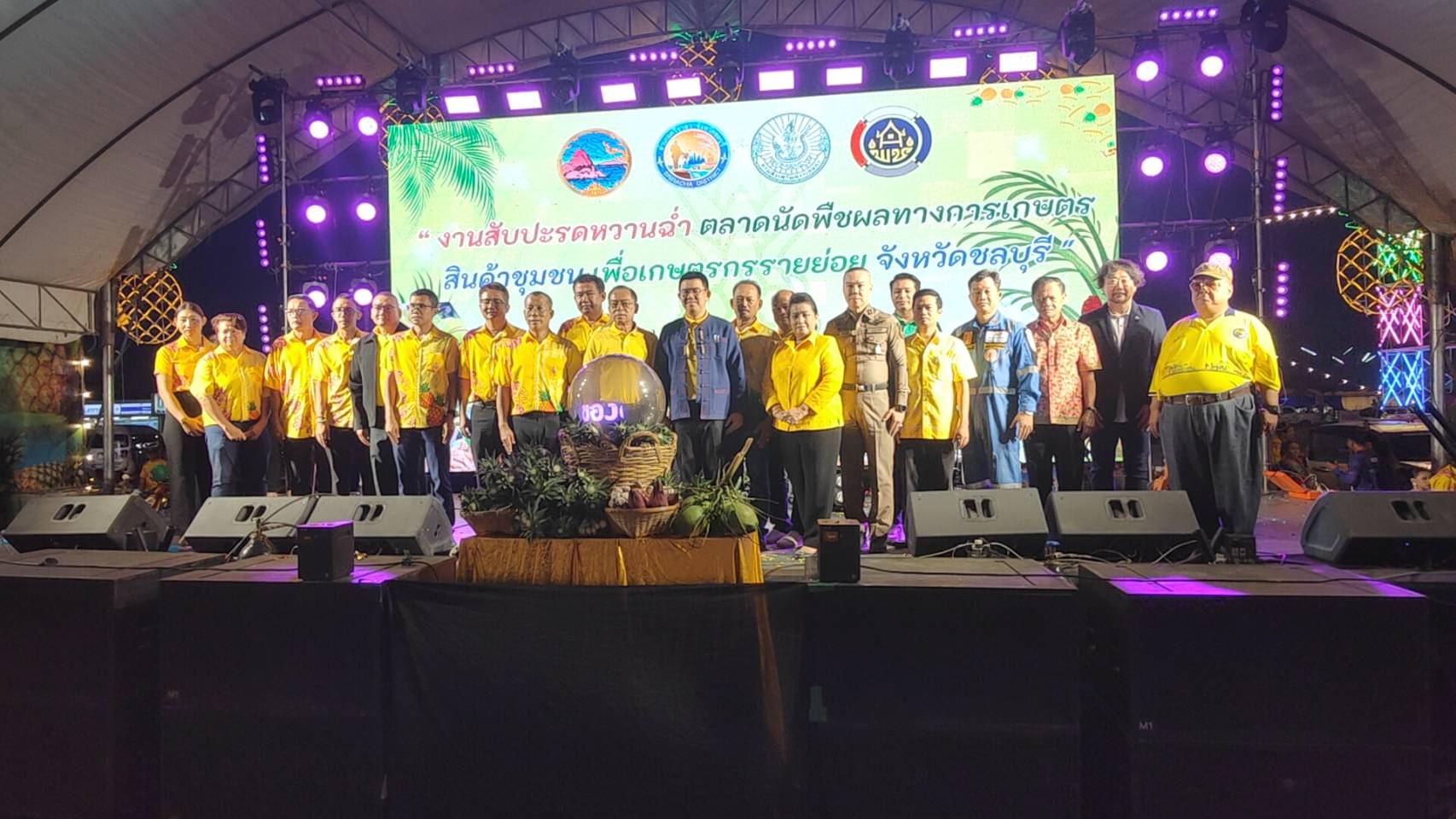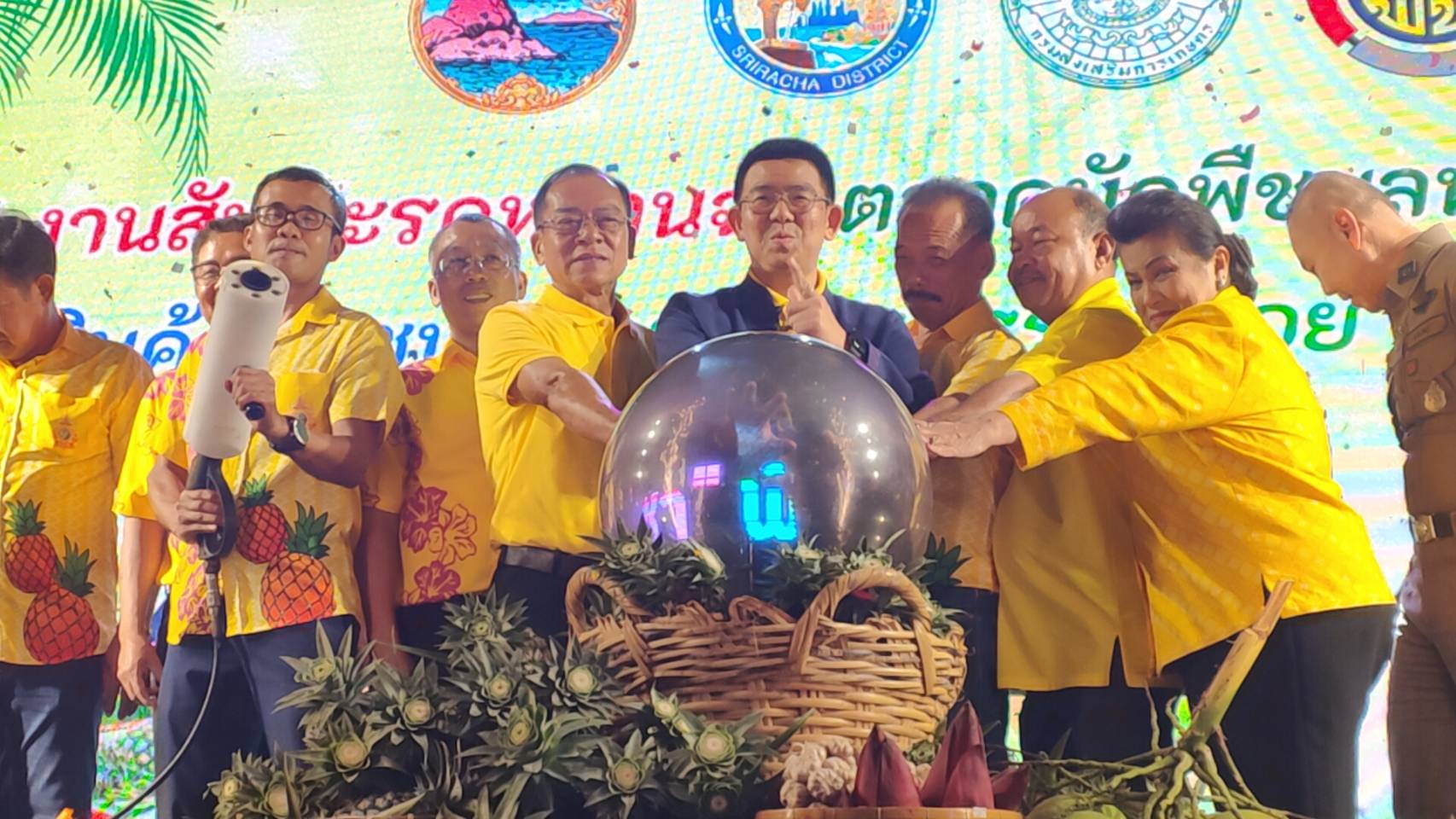 ( 25 กรกฎาคม 2567) นายธวัชชัย ศรีทอง ผู้ว่าราชการจังหวัดชลบุรี มอบหมายให้ นายนพรัตน์ ศรีพรหม นายอำเภอศรีราชา จังหวัดชลบุรี เป็นประธานในพิธีเปิด“งานสับปะรดหวานฉ่ำ ตลาดนัดพืชผลทางการเกษตร สินค้าชุมชน เพื่อเกษตรกร รายย่อย จังหวัดชลบุรี” ในระหว่างวันที่ 24 กรกฎาคม – 4 สิงหาคม 2567 ณ ลานสนามบิน เครือสหพัฒน์ ตำบลบึง อำเภอศรีราชา จังหวัดชลบุรี โดยมี นายอาทิตย์ ทองพิมพ์ เกษตรอำเภอศรีราชา เป็นผู้กล่าวรายงานวัตถุประสงค์ เพื่อเป็นการส่งเสริม ผลิตภัณฑ์ทางการเกษตร สินค้าโครงการหนึ่งตำบล หนึ่งผลิตภัณฑ์ OTOP ส่งเสริมการท่องเที่ยวในเขตพื้นที่ ส่วนการแสดงจำลองแปลงนาผืนสุดท้ายของศรีราชาและมีการออกร้านแสดงสินค้าต่างๆ รวมถึงการจัดการแข่งขันประกอบอาหาร เพื่อสร้างสุดยอดเมนูอาหารใหม่ ๆ ที่รังสรรค์วัตถุดิบหลักจากสับปะรดศรีราชาและซอสพริกศรีราชา ซึ่งเป็นสินค้าพื้นถิ่นของชาวศรีราชาด้วย โดยได้รับความร่วมมือจาก จังหวัดชลบุรี เกษตรจังหวัดชลบุรีอำเภอศรีราชา เป็นผู้ร่วมจัดงาน และมี ผู้นำท้องถิ่น กำนัน ผู้ใหญ่บ้าน หน่วยงานภาคเอกชนและประชาชน เข้าร่วมงานเป็นจำนวนมาก