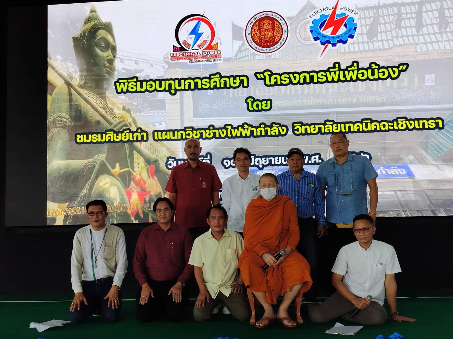 สืบเนื่องจาก ท่านเจ้าคุณกิตติสารมุนี (ประจักษ์ เขมกาโม ) ผู้ช่วยเจ้าอาวาสวัดเทพศิรินทราวาสราชวรวิหาร ในฐานะศิษย์เก่ ได้ดำริ และได้ปรารภกับเพื่อน ๆ ศิษย์เก่าแผนกช่างไฟฟ้ากำลัง วิทยาลัยเทคนิคฉะเชิงเทรา ถึงการริเริ่มจัดโครงการมอบทุนการศึกษาให้รุ่นน้องที่เรียนดีแต่ขาดทุนทรัพย์ โดยที่ท่านเจ้าคุณกิตติสารมุณี ท่านได้มอบทุนการศึกษาตั้งต้นไว้ให้ก่อน