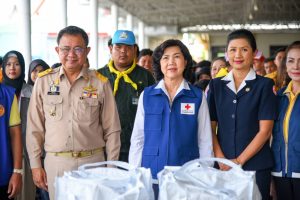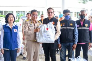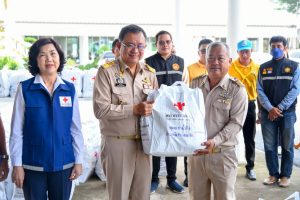 วันที่ 9 ต.ค.66 นายชลธี ยังตรง ผวจ.ฉะเชิงเทรา พร้อมด้วย นางพัทธานันท์ ยังตรง นายกเหล่ากาชาดฉะเชิงเทรา คณะกรรมการเหล่ากาชาดจังหวัดฉะเชิงเทรา นายอำเภอบางน้ำเปรี้ยว ผู้นำชุมชน ผู้นำท้องถิ่น ร่วมลงพื้นที่ให้กำลังใจและมอบถุงยังชัพแก่ผู้ประสบอุทกภัย ณ วัดสุวรรณเตมีย์ ต.ดอนฉิมพลี อ.บางน้ำเปรี้ยว จ.ฉะเชิงเทรา