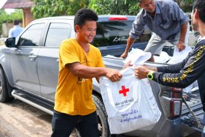 สำหรับ พื้นที่อำเภอบางน้ำเปรี้ยว ได้เกิดฝนตกต่อเนื่อง ส่งผลให้เกิดน้ำท่วมบ้านเรือนราษฏร และยังคงมีน้ำท่วมขังบริเวณที่ลุ่มริมคลอง ริมแม่น้ำ ประชาชนได้รับความเดือดร้อน บ้านเรือนเสียหาย จำนวน 37 หมู่บ้าน ในพื้นที่ ต.โยธะกา ต.บึงน้ำรักษ์ ต.ดอนฉิมพลี ต.โพรงอากาศ และ ต.หมอนทอง โดยกาชาดฉะเชิงเทรา ได้ให้ความช่วยเหลือไปแล้วบางส่วน แต่ก็ยังมีครอบครัวที่ยังไม่ได้รับความช่วยเหลือจากหน่วยงานใดๆ อีก 631 ครัวเรือน จึงได้นำชุดธารน้ำใจฯ แจกเพิ่มเติม จำนวน 631 ชุด โดยมีผู้นำชุมชน ผู้นำท้องถิ่น เข้ารับมอบ เพื่อนำไปแจกจ่ายให้กับประชาชนที่ ประสบภัยในพื้นที่ต่อไป