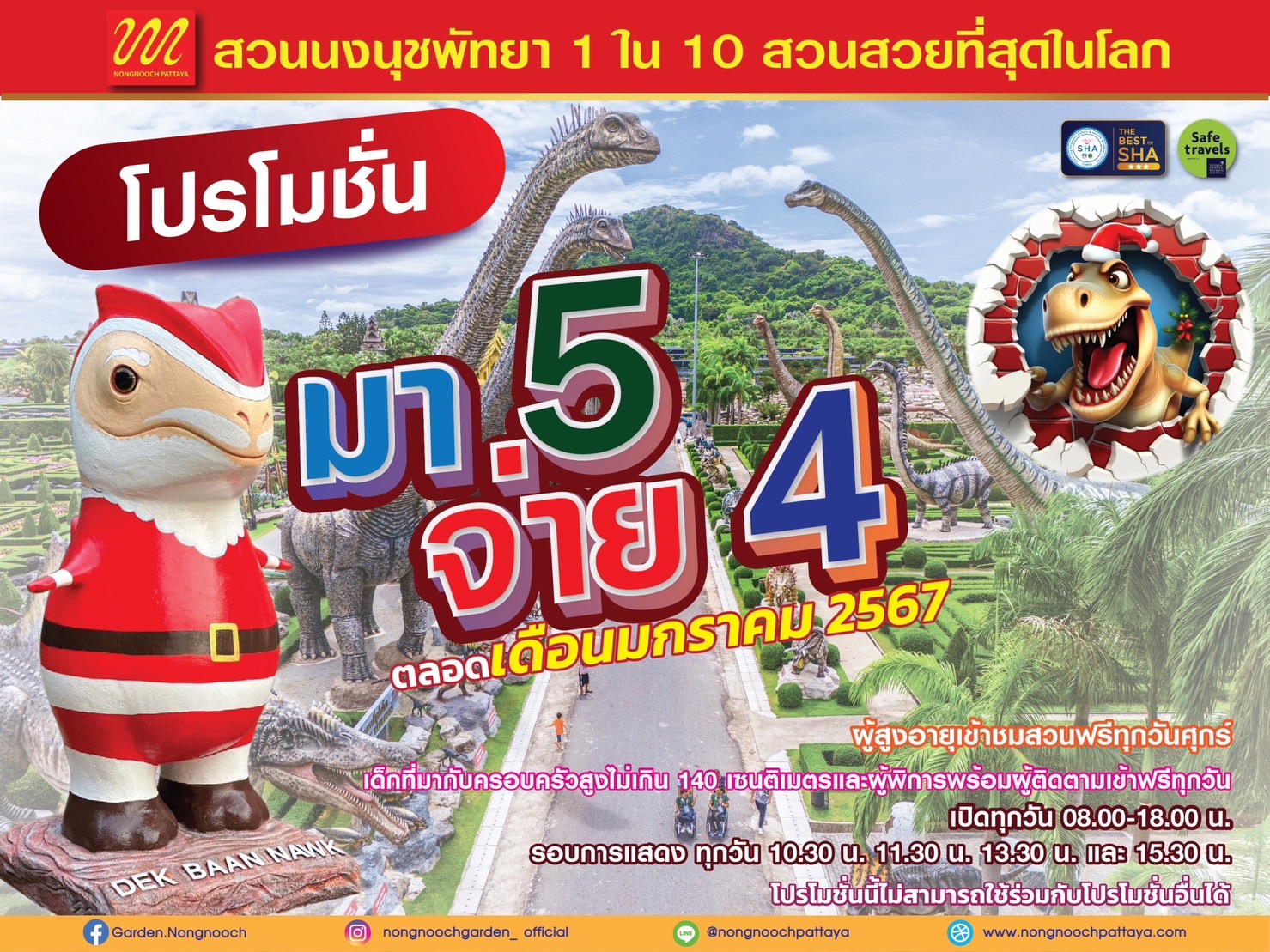 สวนนนงนุชพัทยา โดย นายกัมพล ตันสัจจา ประธานสวนนงนุชพัทยา มอบของขวัญให้กับนักท่องเที่ยวชาวไทย จัดโปรโมชั่นตอนรับปีใหม่สำหรับนักท่องเที่ยวชาวไทย ที่เข้ามาเยี่ยมชมสวน ซื้อบัตรผ่านประตูมา 5 ท่าน จ่ายเพียง 4 ท่าน ตลอดเดือน มกราคม 2567 และในวันเดียวกันนี้นำช้างแสนรู้แต่งชุดซานตาคลอส ออกมาสสร้างสีสันในช่วงเทศกาลคริสต์มาส