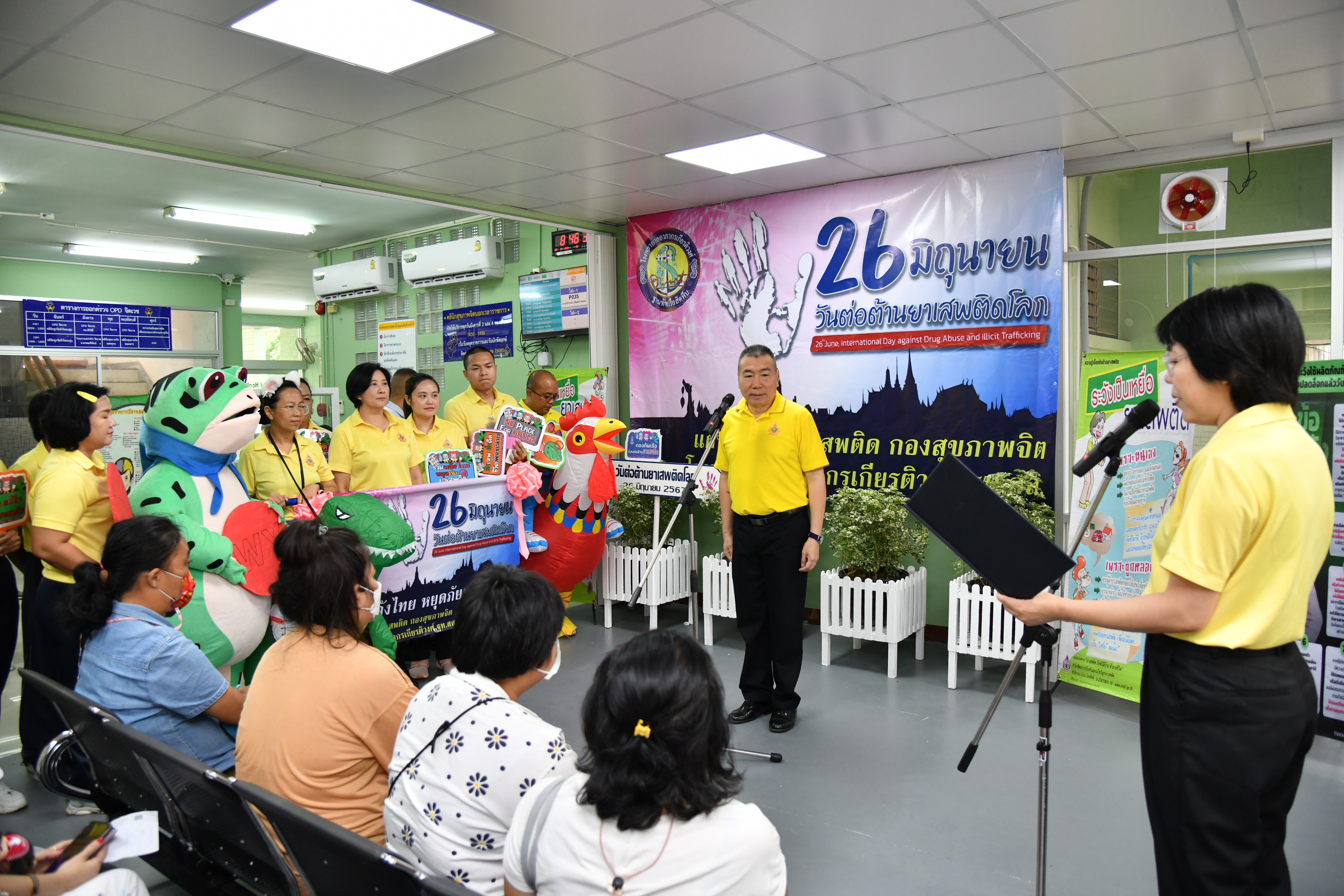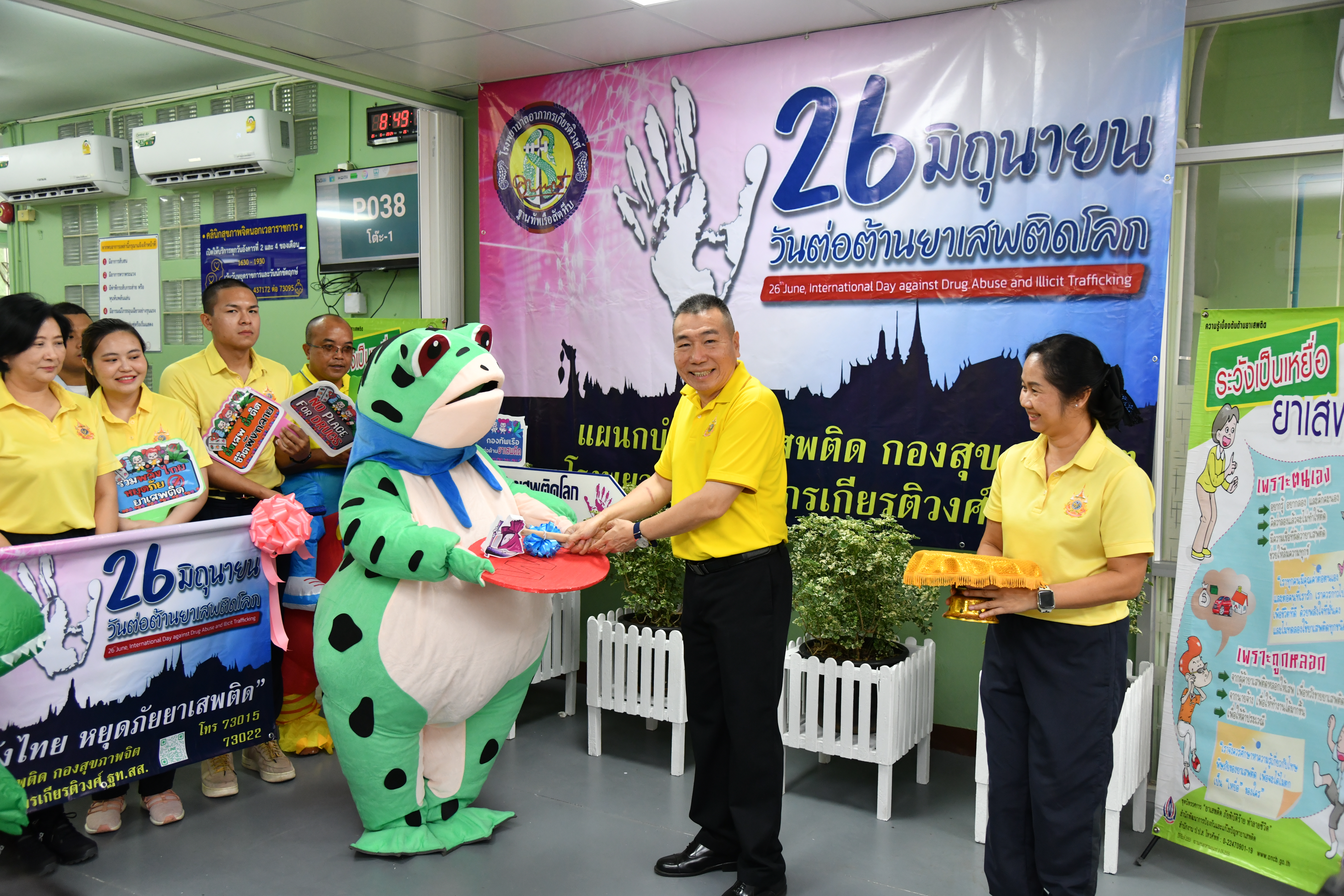 ซึ่งได้จัดกิจกรรมให้ความรู้ เกี่ยวกับโทษพิษภัยของยาเสพติด โรคจิตเวชที่เกิดจากสารเสพติด โรคจิตเวช การให้คำปรึกษา วิธีการป้องกันการติดสารเสพติด และ มีการร่วมสนุกตอบคำถามเกี่ยวกับสารเสพติด โรคทางจิตเวช และลุ้นรับของรางวัลมากมาย โดยมีทหารกองประจำการ ผู้มาใช้บริการ และประชาชนทั่วไปให้ความสนใจ เข้าร่วมในกิจกรรมดังกล่าวอย่างสนุกสนาน ณ บริเวณห้องตรวจ คลินิกสุขภาพจิตเมื่อ วันที่ 26 มิถุนายน 2567(8.00-10.00)