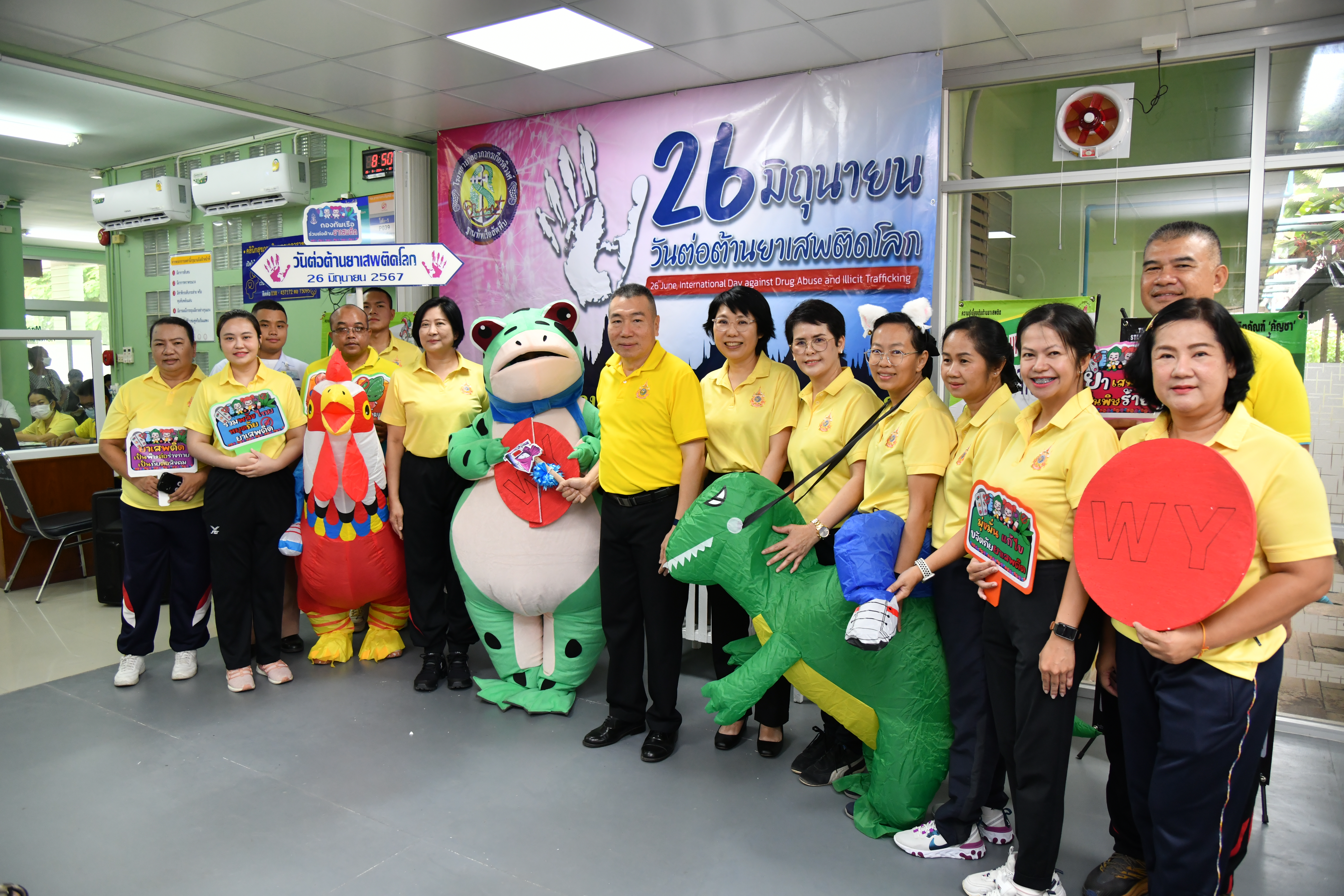 กองสุขภาพจิตโรงพยาบาลอาภากรเกียรติวงศ์ ฐานทัพเรือสัตหีบ จัดกิจกรรม “วันต่อต้านยาเสพติดโลก” โดยมี นาวาเอก สุเชษฐ ตรรกธาดา รองผู้อำนวยการโรงพยาบาลอาภากรเกียรติวงศ์ ฐานทัพเรือสัตหีบ เป็นประธานกล่าวเปิดงาน