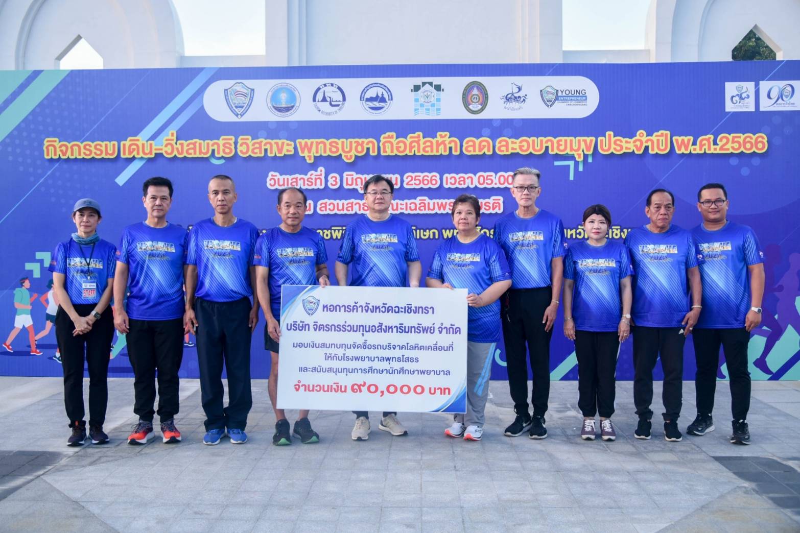 วันนี้ 3 มิถุนายน 2566 ที่ สวนสาธารณะเฉลิมพระเกียรติ เนื่องในโอกาสมหามงคลพระราชพิธีบรมราชาภิเษก พ.ศ.2562 นายขจรเกียรติ รักพานิชมณี ผู้ว่าราชการจังหวัดฉะเชิงเทรา เป็นประธานกล่าวเปิดกิจกรรม เดิน-วิ่งสมาธิ วิสาขะ พุทธบูชา ถือศีลห้า ลด ละอบายมุข ประจำปี พ.ศ.2566 พร้อมด้วย นายณัฐพงษ์ สงวนจิตร รองผู้ว่าราชการจังหวัดฉะเชิงเทรา นางสาวฉัตรประอร นิยม รองผู้ว่าราชการจังหวัดฉะเชิงเทรา นายจิตรกร เผด็จศึก ประธานหอการค้าจังหวัดฉะเชิงเทรา หน่วยงาน ภาครัฐ ภาคเอกชน สื่อมวลชน และประชาชน เข้าร่วมกิจกรรม