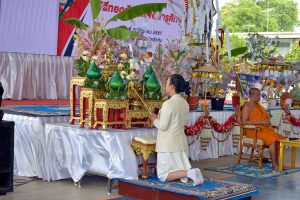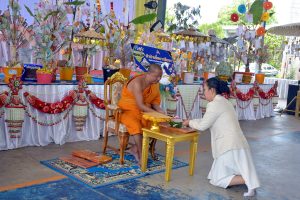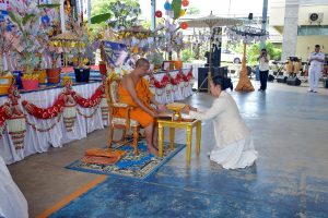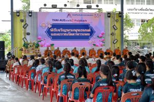 จากนั้น ดร.อรทัย โยธินรุ่งเรือง สุดสงวน ผู้อำนวยการวิทยาลัยเทคนิคสัตหีบ เป็นประธานฝ่ายฆราวาสในการถวายเงินทอดผ้าป่าเพื่อการศึกษา จากแผนกวิชาต่าง ๆ ของวิทยาลัยเทคนิคสัตหีบ จำนวน 18 กอง แด่ พระครูเกษมกิตติโสภณ เจ้าอาวาสวัดสามัคคีบรรพต โดยมีผู้บริหาร คณะครู บุคลากรทางการศึกษา นักเรียนนักศึกษา ผู้ปกครอง และศิษย์เก่า เข้าร่วมพิธีจำนวนมาก
