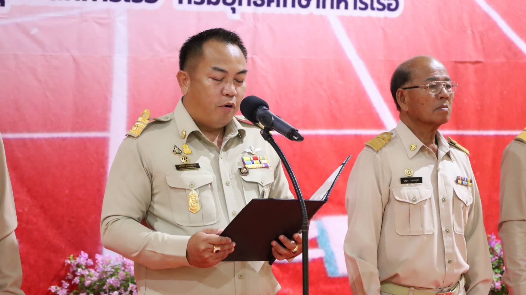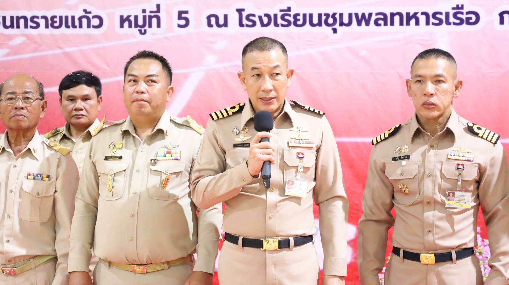 นาวาเอก ยุทธนา ชูธงชัย ผู้บังคับการโรงเรียนชุมพลทหารเรือ กรมยุทธศึกษาทหารเรือ กล่าวว่าในวันนี้ เป็นอีกโครงการสำคัญ ที่เทศบาลตำบลเกล็ดแก้ว ได้ร่วมมือกับกองทัพเรือ โดยโรงเรียนชุมพลทหารเรือ กรมยุทธศึกษาทหารเรือ เพื่อนักเรียนจ่ากำลังพล และครอบครัว ของโรงเรียนชุมพลทหารเรือ รวมถึง พี่น้อง ประชาชน ในพื้นที่ ชุมชนทรายแก้ว และในเขตเทศบาลตำบลเกล็ดแก้ว ซึ่งจะเกิดประโยชน์เป็นอย่างยิ่ง ในการออกกำลังกาย และ ฝึกหัดศึกษา กำลังพล และครอบครัว ของโรงเรียนชุมพลทหารเรือ ตลอดจนประชาชน ในพื้นที่ ได้ใช้ในการออกกำลังกาย ใช้เวลาว่างให้เกิดประโยชน์ ห่างไกลยาเสพติด และใช้เป็นพื้นที่ในการจัดกิจกรรมต่างๆทางการกีฬาให้กับโรงเรียนชุมพลทหารเรือ และ ประชาชน ในพื้นที่ ซึ่งต้องขอขอบคุณ ทางเทศบาลตำบลเกล็ดแก้ว ที่ให้ความสำคัญ และสนับสนุนงบประมาณในการปรับปรุง สนามกีฬา เพื่อประชาชน และกำลังพล ในชุมชนทรายแก้ว ในครั้งนี้