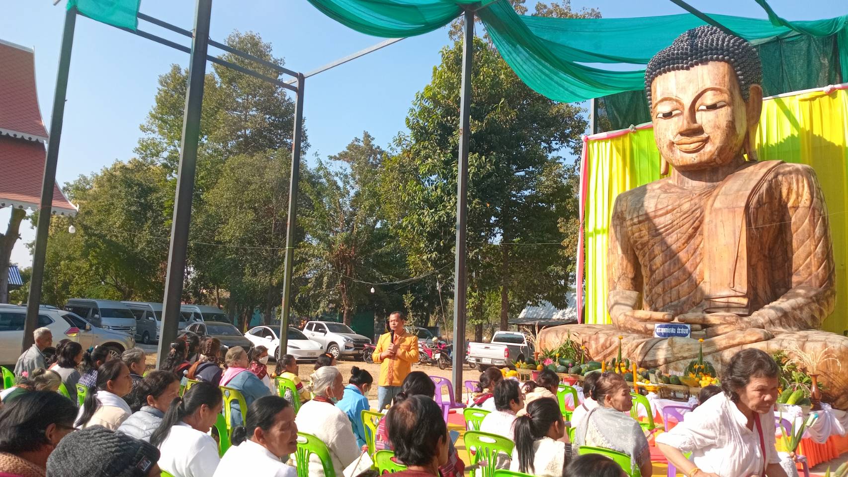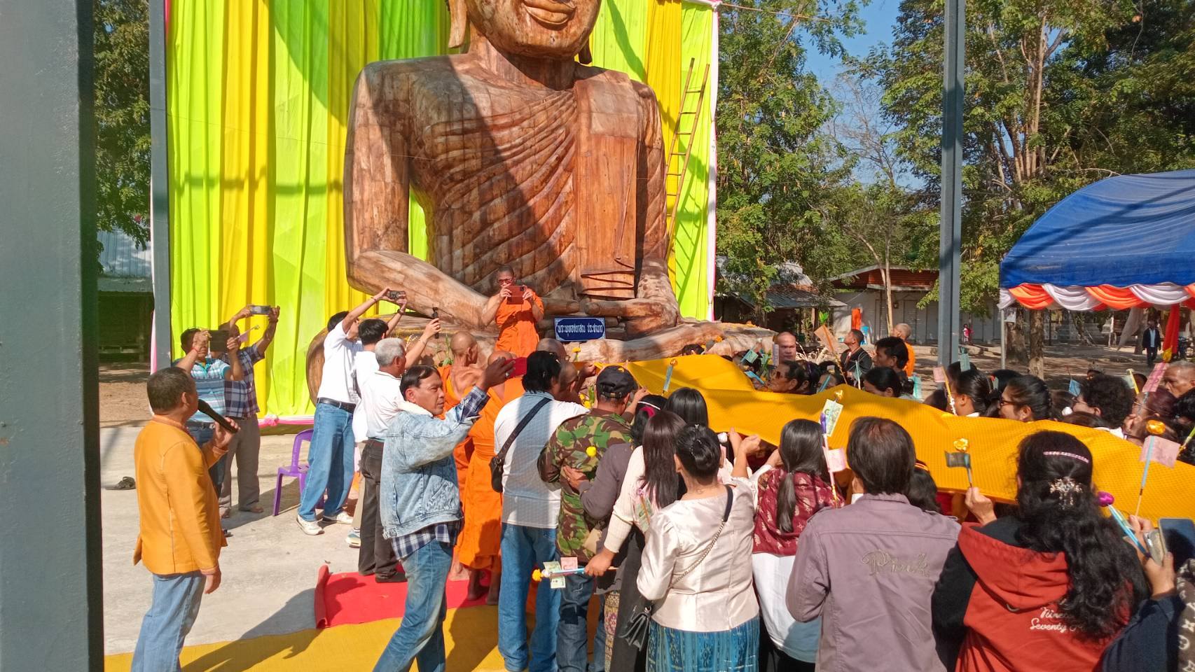 ผู้สื่อข่าวประจำจังหวัดสุรินทร์ รายงานว่า เมื่อวันที่ 19 มกราคม 2567 เวลา 09.30 น. ที่วัดหนองคูพัฒนา บ้านหนองคูพัฒนา หมู่ที่ 13 ตำบลขอนแตก อำเภอสังขะ จังหวัดสุรินทร์ ได้มีการจัดงานทอดผ้าป่าสามัคคี เพื่อสมทบทุนสร้างพระพุทธรูปพระประธานประจำอุโบสถปางสมาธิ ซึ่งมีความสูง 4 เมตร 80 เซ็นติเมตร หน้าตักกว้าง 3 เมตร 80 เซ็นติเมตร แกะสลักด้วยไม้ประดู่ทั้งองค์ ซึ่งจะใช้เป็นพระประธานประจำอุโบสถในขนาดนี้ได้ดำเนินการก่อสร้างไปแล้วประมาณ 60 เปอร์เซ็นต์ คาดว่าจะแล้วเสร็จภายในปี 2568 นี้