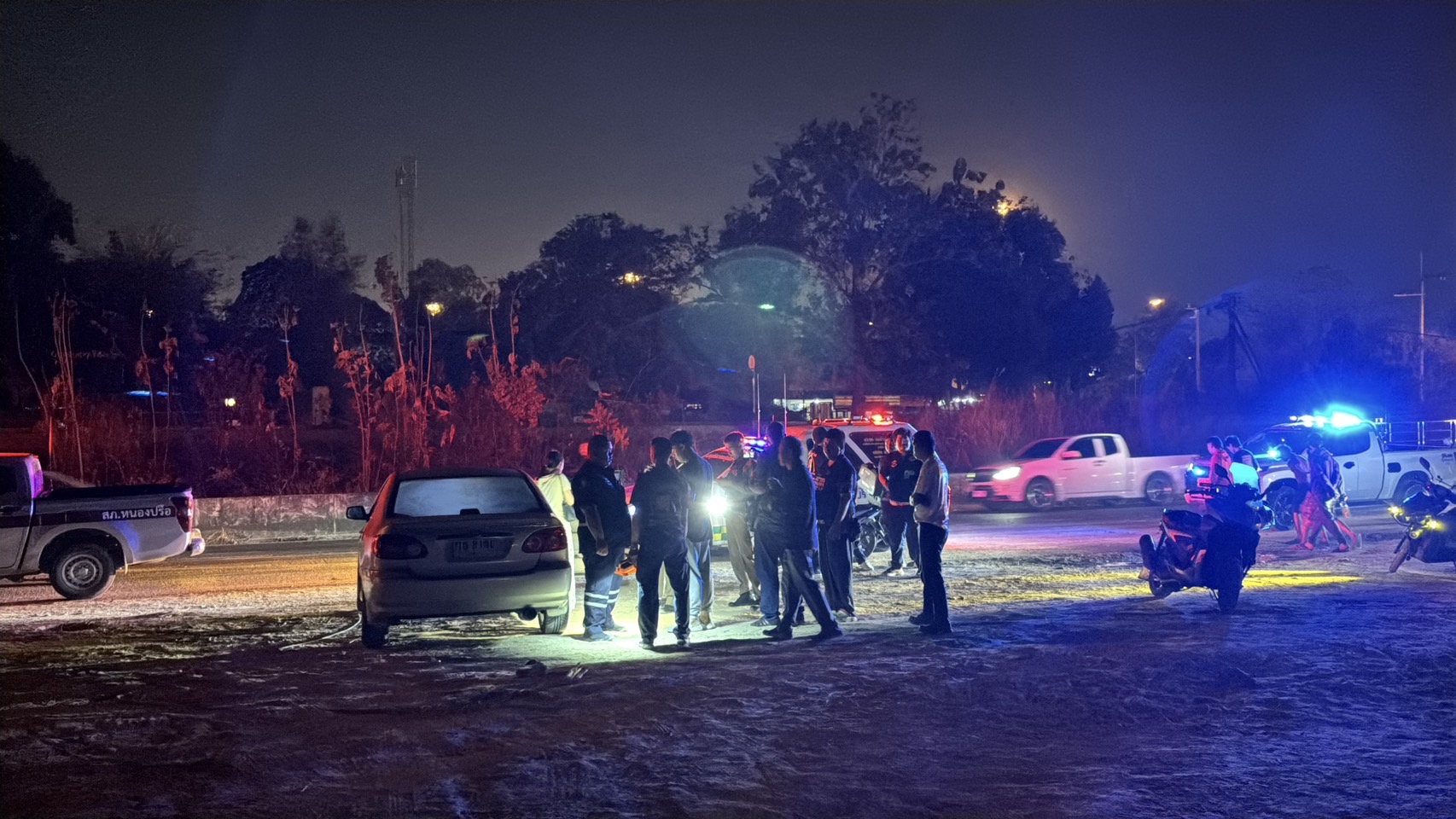 ต่อมาช่วงเช้าวันที่ 3 ก.พ.68 ผู้สื่อข่าวลงพื้นที่ไปตรวจสอบที่เกิดเหตุ อีกครั้ง โดยยังพบว่า ยังมีปลอกกระสุน ขนาด 9 มม. ยังตกอยู่ในที่เกิดเหตุจำนวน 5 ปลอก ซึ่งคาดว่าในช่วงเมื่อคืนที่ผ่านมา ตำรวจยังเก็บไปไม่หมด ขณะที่ห่างจากจุดเกิดเหตุไปประมาณ 20 เมตร บริเวณอาหารแช่แข็ง พบว่า บริเวณหน้าร้าน และ ตู้เย็นแช่เย็น มีร่องรอยถูกกระสุนยิงได้รับความเสียหาย จำนวน 4 รู และ ยังพบเศษหัวกระสุนปืน ขนาด 9 มม. กระเด็นกระจัดกระจายเกลื่อนพื้นจำนวน 2 หัว นอกจากนี้ที่บริเวณรถกระบะ บรรทุกตู้แช่แข็ง ยี่ห้อโตโยต้า สีขาว ทะเบียน ยก 419 ชลบุรี โดยพบว่าที่บริเวณฝากระโปรงด้านหน้ามีรอยเท้าและรอยคราบเลือดเหยียบย้ำอยู่จำนวนมาก