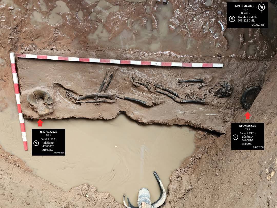 ที่โนนพลล้าน ต.ในเมือง อ.เมือง จ.นครราชสีมา สำหรับการขุดค้นแหล่งโบราณคดีโนนพลล้าน ซึ่งมาจนถึงวันนี้ (9 กุมภาพันธ์ 2568) กลุ่มโบราณคดีของขุดพบร่องรอยการฝังศพของมนุษย์ร่วมกับหม้อดินเผาแบบบ้านปราสาท (รูปทรงคนโทปากแตรมีเชิง ทาน้ำดินสีแดง) ซึ่งถูกยกให้เป็นรูปแบบเด่นของภาชนะดินเผาสมัยสำริด ในพื้นที่ลุ่มแม่น้ำมูลตอนบน โดยกำหนดอายุสมัยอยู่ในช่วง 3,000-2,500 ปีมาแล้ว ผลจากการขุดค้นทางโบราณคดีจนถึงตอนนี้ เราพบโครงกระดูกมนุษย์ที่พบร่วมกับภาชนะดินเผาแบบบ้านปราสาท สภาพสมบูรณ์ จำนวน 3 โครง