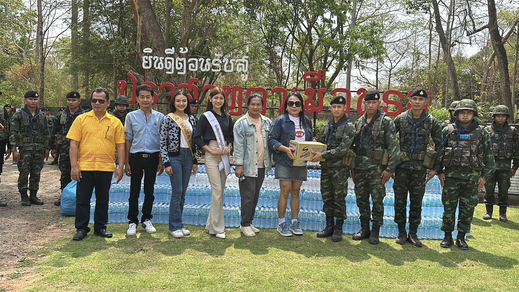เมื่อวันที่ 4 มีนาคม 2568 นายชนะชล มูลจันทร์ ประธานชมรมผู้สื่อข่าวหนังสือพิมพ์และสื่อออนไลน์จังหวัดสุรินทร์ พร้อมด้วย นายชูชัย ดำรงค์สันติสุข ผู้อำนวยการศูนย์ข่าว สำนักข่าวท็อปนิวส์ภาคตะวันออกเฉียงเหนือ และประธานชมรมผู้สื่อข่าวสุรินทร์ทูเดย์ กลุ่มศิลปิน นางงานมิสแกรน์ศรีสะเกษ และธิดาผ้าไหม สุรินทร์ พร้อมด้วยสมาชิกชมรมสื่อมวลชน ได้นำเครื่องอุปโภคบริโภค ข้าวสาร อาหารแห้ง ผลไม้ และน้ำดื่มสะอาด เดินทางมาเยี่ยมและมอบให้ทหารไทยปฏิบัติหน้าที่ชายแดนไทย-กัมพูชา ณ ฐานปฏิบัติการปราสาทตาเมือนธม บ้านหนองคันนา ต.ตาเมียง อ.พนมดงรัก จ.สุรินทร์ เพื่อสร้างขวัญกำลังใจและแสดงออกถึงความห่วงใยจากแนวหลังสู่แนวหน้า