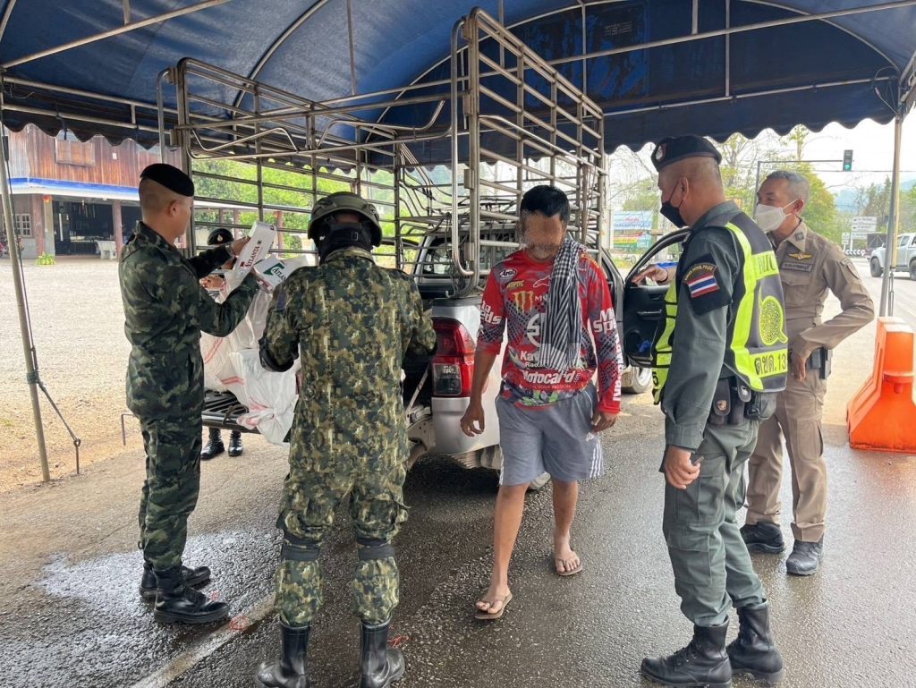 วันนี้ (21 มี.ค.68) พล.ต.อัษฎาวุธ ปันยารชุน ผู้บัญชาการกองพลหารราบที่ 9 ในฐานะ ผู้บัญชาการกองกำลังสุรสีห์ ร่วมบูรณาการกับ นายอธิสรรค์ อินทร์ตรา ผู้ว่าราชการจังหวัดกาญจนบุรี เปิดเผยว่า ได้รับแจ้งจากแหล่งข่าวในพื้นที่ ว่าจะมีการลักลอบขนบุหรี่เถื่อนจากชายแดนเข้ามายังพื้นที่ตอนใน จึงได้สั่งการให้ พ.อ.พรรณศักย์ เพรียวพานิช ผู้บังคับการกรมทหารราบที่ 29 ในฐานะ ผู้บังคับหน่วยเฉพาะกิจลาดหญ้า กองกำลังสุรสีห์ พร้อมด้วย พันเอก ปิยะเณศร์ ภัทรศาศวัตวงษ์ รองผู้บังคับหน่วยเฉพาะกิจลาดหญ้า กองกำลังสุรสีห์ กองร้อยตำรวจตระเวนชายแดนที่ 135 สภ.ทองผาภูมิ และหน่วยงานความมั่นคงในพื้นที่ อำเภอทองผาภูมิ หลังสืบทราบว่าจะมีการลักลอบขนสินค้าเลี่ยงภาษีจากชายแดน ผ่านมาตามเส้นทางในพื้นที่บ้านท่าขนุน ตำบลท่าขนุน อำเภอทองผาภูมิ จังหวัดกาญจนบุรี
