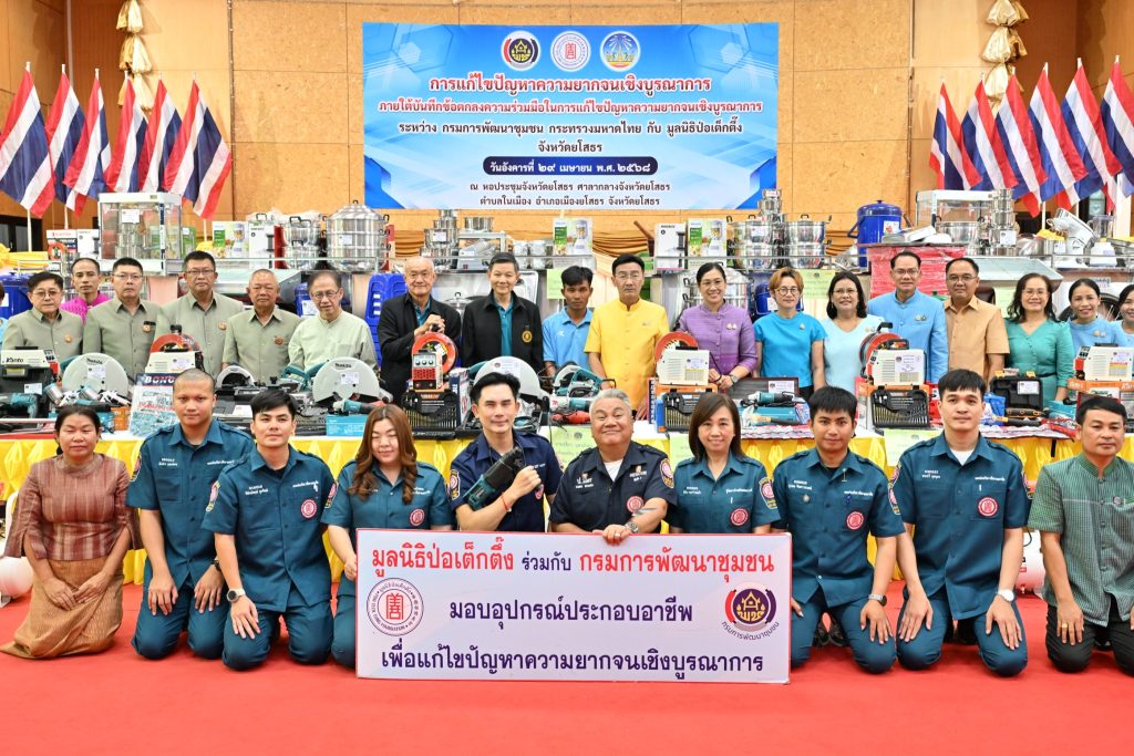วันนี้ (วันอังคารที่ 29 เมษายน พ.ศ. 2568) มูลนิธิป่อเต็กตึ๊ง นำโดย นายวิชิต ชินวงศ์วรกุล รองประธานกรรมการ พร้อมด้วย นายสุรพงษ์ เตชะหรูวิจิตร กรรมการและรองเลขาธิการ และนางศิริพร กระจ่างหล้า ผู้จัดการฝ่ายสังคมสงเคราะห์ นางสาวศุภรัตน์ สมบัติเจริญไทย หัวหน้าแผนกส่งเสริมการศึกษาและอาชีพ และนางสาวเนาวรัตน์ วรรณศิริ หัวหน้าแผนกหน่วยแพทย์สงเคราะห์ชุมชน นำทีมลงพื้นที่จังหวัดยโสธร (จังหวัดที่ 20 ของทางภาคตะวันออกเฉียงเหนือ) มอบอุปกรณ์ประกอบอาชีพให้แก่ครัวเรือนยากจน จำนวน 31 ครัวเรือน และมอบรถจักรยานแก่โรงเรียนชนบทที่ขาดแคลน จำนวน 2 โรงเรียน รวมจำนวน 20 คัน เพื่อให้นักเรียนที่ประสบปัญหาในการเดินทางได้ยืมเรียน
