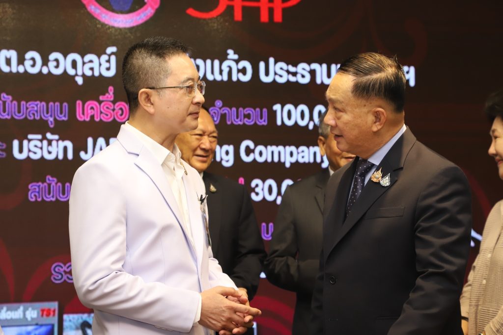 วันอังคารที่ 13 พ.ค. 2568 ณ ลานกิจกรรมชั้น 2 อาคารมหาภูมิพลราชานุสรณ์ 88 พรรษาโรงพยาบาลตำรวจ พล.ต.อ.อดุลย์ แสงสิงแก้ว ประธานมูลนิธิ พลตำรวจเอกอดุลย์ แสงสิงแก้ว สนับสนุนเครื่องดนตรี จำนวน 100,000 บาท และนางสาวจิราภรณ์ อุดชาชน ประธานกรรมการบริษัท JAP Marketing Company Limited สนับสนุน Face shield 30,000 ชิ้น จำนวน 300,000 บาท รวมมูลค่าทั้งสิ้น 400,000 บาท ให้ โรงพยาบาลตำรวจ