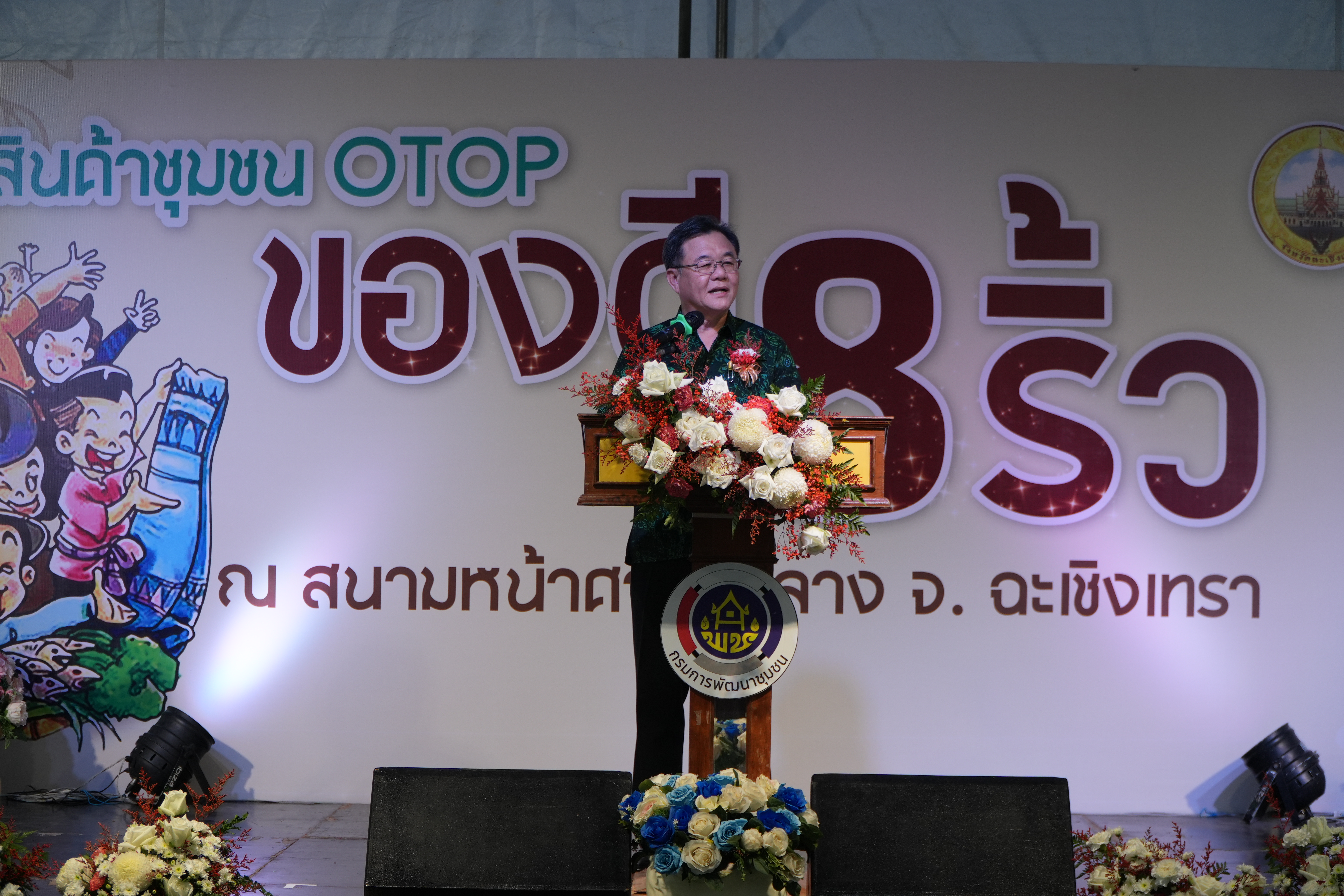 วันที่ 4 มิถุนายน 2568 เวลา 17.30 น. นายขจรเกียรติ รักพานิชมณี ผู้ว่าราชการจังหวัดฉะเชิงเทรา เป็นประธานในพิธีเปิดกิจกรรมทดสอบตลาด ตามโครงการส่งเสริมกระบวนการเครือข่ายองค์ความรู้ (Knowledge – Based OTOP : KBO) จังหวัด และโครงการพัฒนาผลิตภัณฑ์ OTOP กลุ่มปรับตัวสู่การพัฒนา (Quadrant D) ให้มีคุณภาพมาตรฐาน “มหกรรมสินค้าชุมชน OTOP ของดี 8 ริ้ว” ณ บริเวณสนามหญ้าหน้าศาลากลางจังหวัดฉะเชิงเทรา อำเภอเมืองฉะเชิงเทรา จังหวัดฉะเชิงเทรา พร้อมด้วยนางสาวฉัตรประอร นิยม รองผู้ว่าราชการจังหวัดฉะเชิงเทรา ประธานคณะกรรมการเครือข่ายองค์ความรู้ (Knowledge – Based OTOP : KBO) จังหวัดฉะเชิงเทรา หัวหน้าส่วนราชการ และกลุ่มเครือข่าย OTOP เข้าร่วม