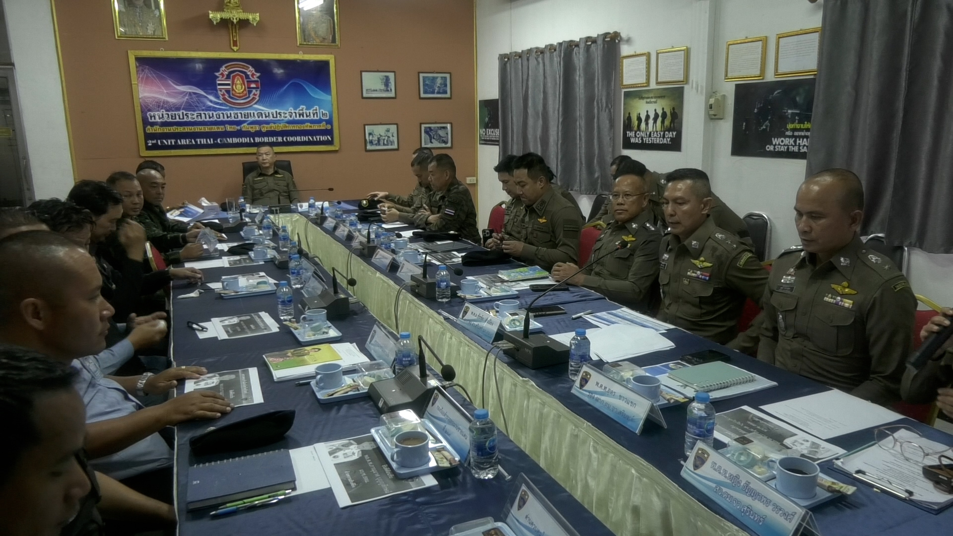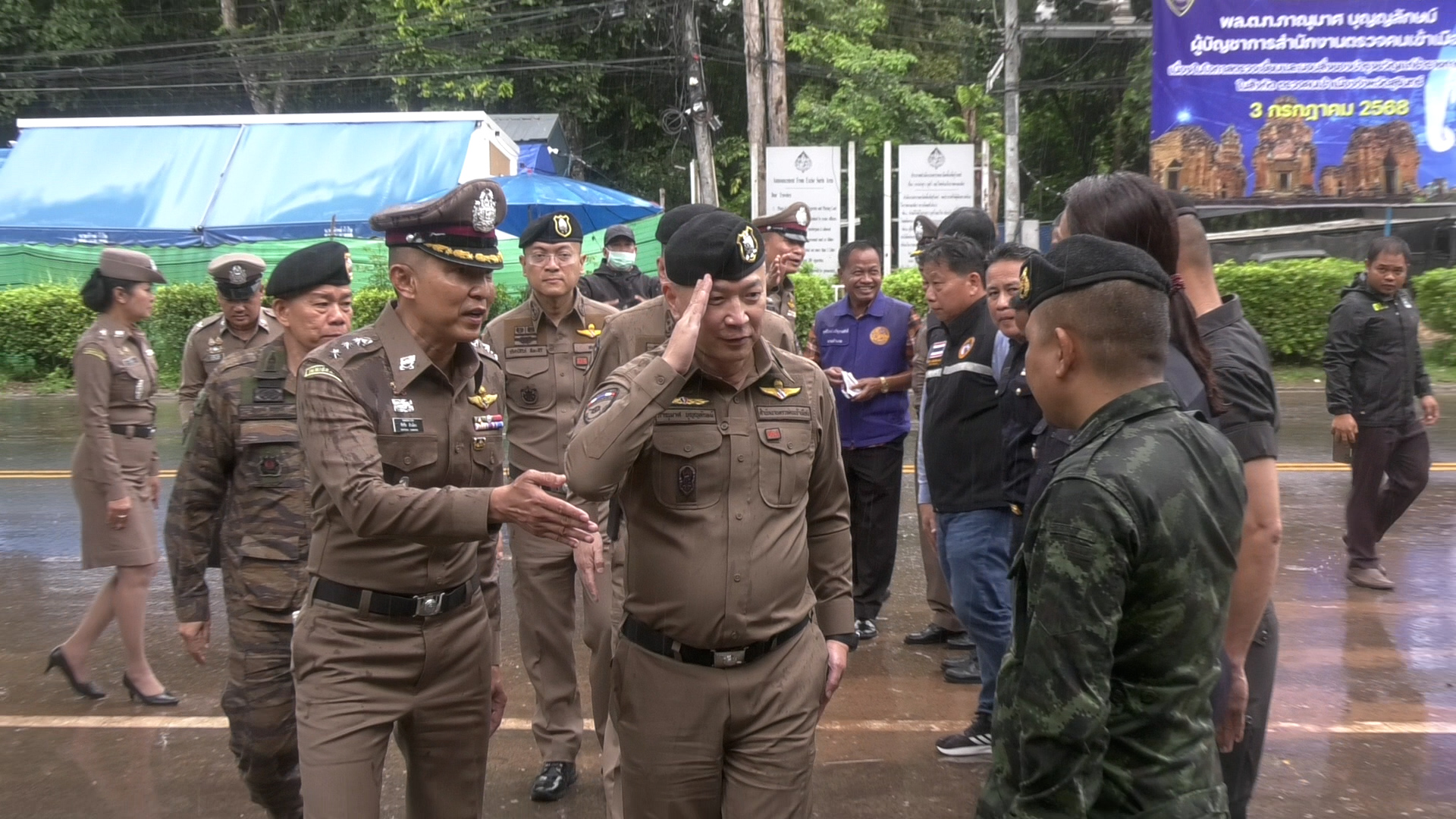 วันที่ 3 ก.ค.68 เวลา 13.00 น.ที่จุดผ่านแดนถาวรช่องจอม ต.ด่าน อ.กาบเชิง จ.สุรินทร์ พล.ต.ท.ภาณุมาศ บุญญลักษม์ ผู้บัญชาการสำนักงานตรวจคนเข้าเมือง ได้เดินทางมาตรวจเยี่ยมและมอบสิ่งของบำรุงขวัญแก่ข้าราชการตำรวจ ในสังกัด ตรวจคนเข้าเมือง จ.สุรินทร์ พร้อมร่วมประชุมร่วมกับ พันเอก ภาคภูมิ นภากาศ ผู้บังคับหน่วยเฉพาะกิจที่ 2 ผู้แทนจากกองกำลังสุรนารี,นายสุทธิโรจน์ เจริญธนะศักดิ์ นายอำเภอกาบเชิง ,พล.ต.อ.คำพล โนนุช ผกก.สภ.กาบเชิงฯ,นายศิริชัย ตันติรัตนานนท์ นายก อบต.ด่าน.และหน่วยงานในพื้นที่ที่เกี่ยวข้อง โดยมี พ.ต.อ.ชัชชัย สำเนียง ผกก.ตม.จว.สุรินทร์ เป็นผู้กล่าวรายงานสถานการณ์แรงงานต่างด้าวในพื้นที่ และ เพื่อรับทราบสถานการณ์ชายแดนในพื้นที่จากหน่วยงานที่เกี่ยวข้องต่างๆ ภายห้องประชุมศูนย์ประสานงานพื้นที่ชายแดนไทย-กัมพูชา หน้าจุดผ่านแดนถาวรช่องจอม