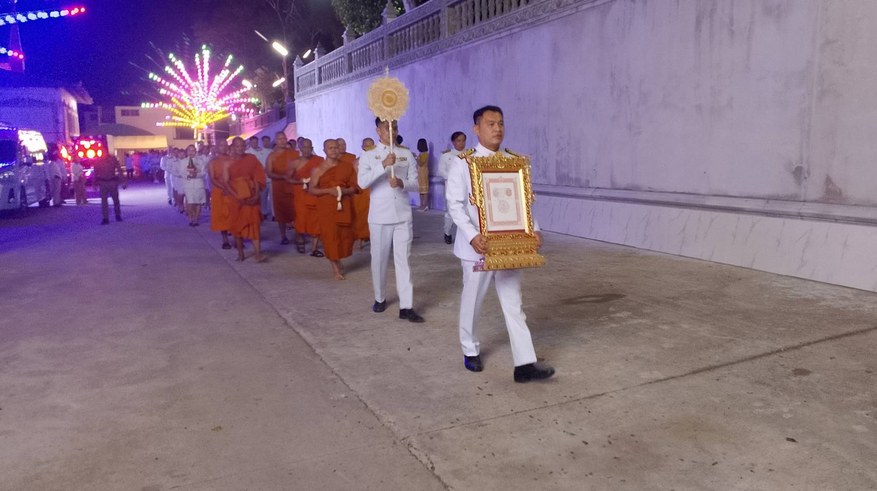 โดยในวันนี้เวลา19.00น.(30มิ.ย.2568)ทางคณะสงฆ์วัดเขาช่องลม และประชาชนชาวอำเภอศรีราชา ได้ร่วมกันทำพิธีต้อนรับสัญญาบัตร พัดยศ ผ้าไตร พระราชทาน จาก พระบาทสมเด็จพระปรเมนทรรามาธิบดีศรีสินทรมหาวชิราลงกรณ มหิศรภูมิพลราชวรางกูร กิติสิริสมบูรณอดุลยเดช สยามินทราธิเบศรราชวโรดม บรมนาถบพิตร พระวชิรเกล้าเจ้าอยู่หัว ที่ทรงพระราชทานให้ “พระครูภาวนาวชิราลังการ วิ.”เจ้าอาวาสวัดเขาช่องลม ที่พุทธมลฑล จังหวัดนครปฐมในเวลา13.00น. โดยมีขบวนแห่ ตราตั้ง สัญญาบัตร พัดยศ ผ้าไตรพระราชทานโดยข้าราชการครูแต่งชุดขาวเดินในขบวน และในอุโบสถมีพระสงฆ์ทรงสมณศักดิ์ จำนวน 10 รูป เจริญชัยมงคลคาถาและเจริญพระพุทธมนต์ โดยทางคณะสงฆ์อำเภอศรีราชาและประชาชน ร่วมแสดงความยินดีและมุทิตาสักการะกับ “พระครูภาวนาวชิราลังการ วิ.”ที่ได้รับพระราชทานสมณศักดิ์ในครั้งนี้จำนวนมาก