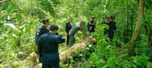 วันที่ 2 สิงหาคม 2568 เวลา 10.00 น. เจ้าหน้าที่ฝ่ายปกครองอำเภอไทรโยค สนธิกำลังหน่วยงานความมั่นคงและหน่วยป่าไม้ เข้าตรวจสอบพื้นที่ป่าสงวนแห่งชาติในหมู่ 9 ตำบลวังกระแจะ หลังได้รับแจ้งจากสายด่วนประชาชนว่ามีการลักลอบทำไม้ผิดกฎหมาย